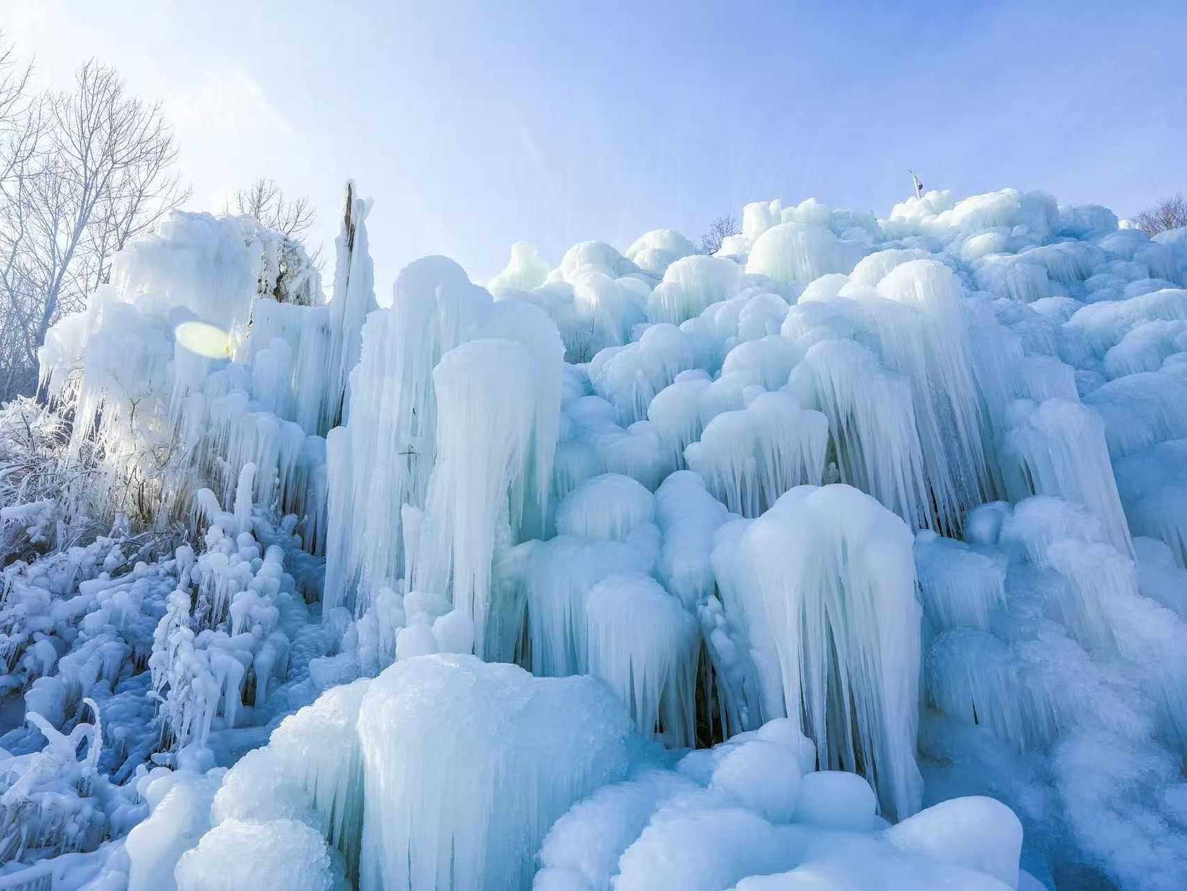 雪后初霁,延庆玉渡山化作一片晶莹剔透的琉璃世界。12月14日,在玉渡山风景区的冰溪峡谷,一道道冰瀑从山崖垂悬而下,凝成玉树琼林般的冰瀑奇观。在冬日暖阳的照射下,冰面泛起淡淡的蓝色光泽,光影流转,格外梦幻。若游赏之余感到寒意,景区内还设有温暖的小屋,可供游客围炉煮茶。详情>>