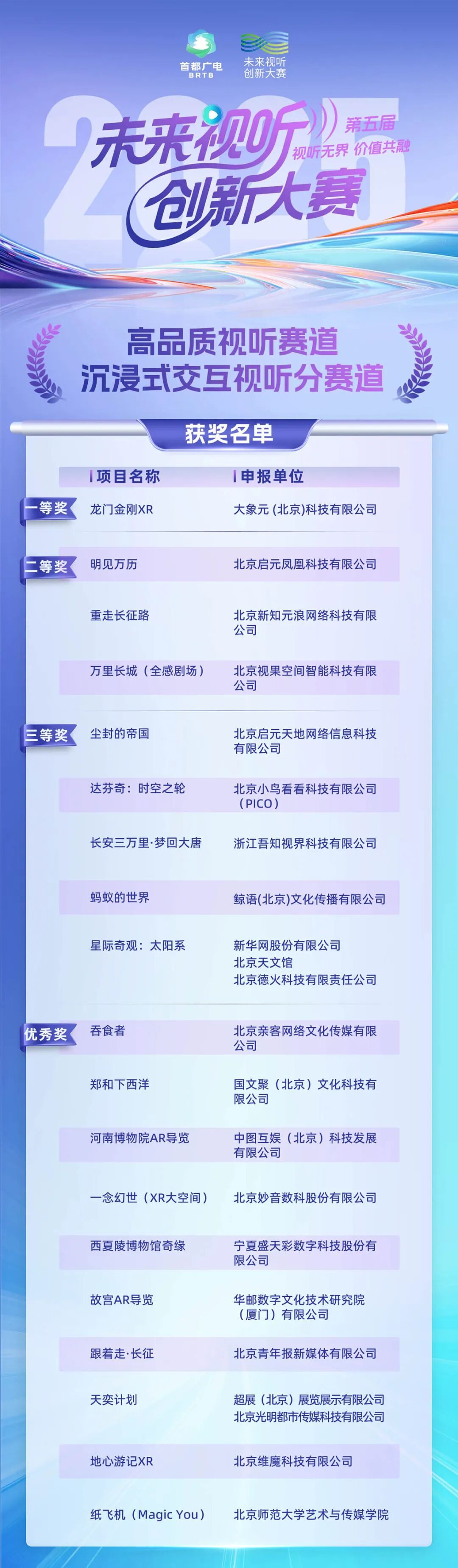 高品质视听赛道-沉浸式交互视听分赛道获奖作品。
