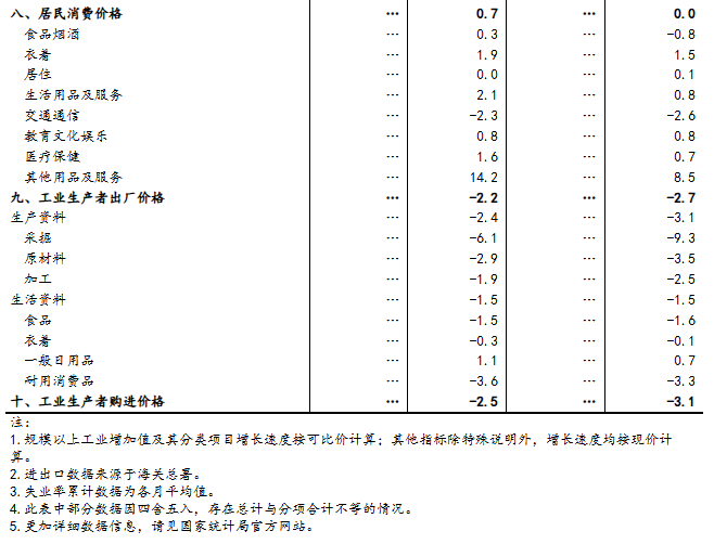 (1)规模以上工业增加值及其分类项目增长速度按可比价计算,为实际增长速度;其他指标除特殊说明外,均按现价计算,为名义增长速度。