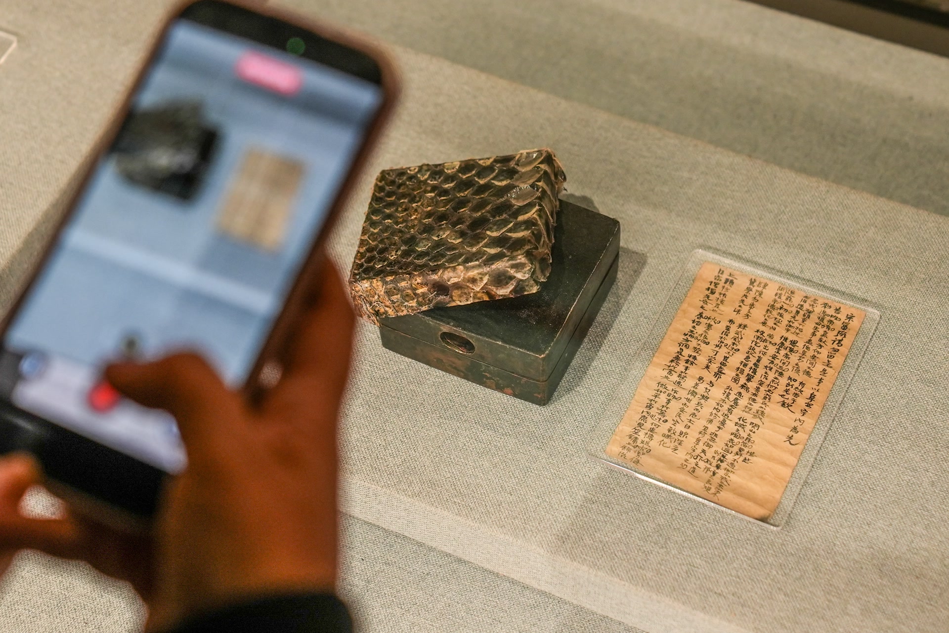 展览还单独展示了一组古人的“小抄”。巴掌大的丝质或纸质“夹带”上,布满密密麻麻的小字。“考生将考试相关资料藏在衣物和考具中带入考场,是最常见的作弊手段。我们还展示了一只作弊墨盒。”李晓頔说,为了应对这些行为,古代也有“安检”,“考场会实行严密搜检制度,对入场人员及物品进行全方位检查。”