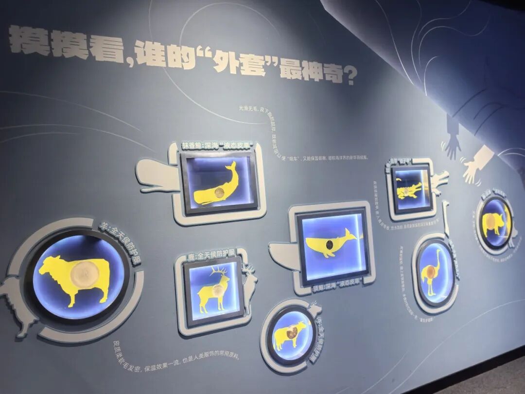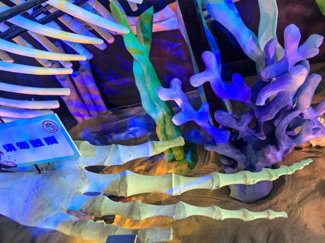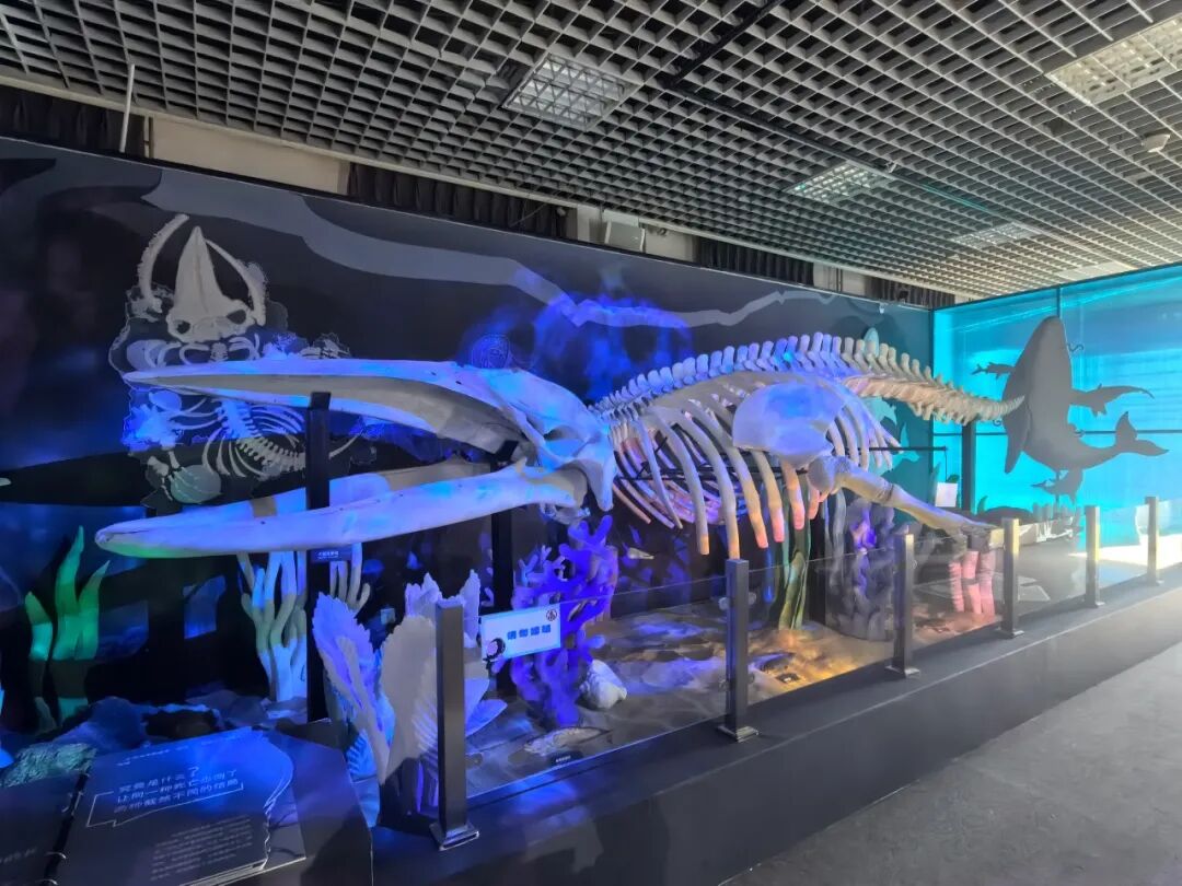 展览看点预告: 仔细观察珍贵的鲸类骨骼标本! 重点看鳍状肢内部的骨骼结构,寻找与陆地哺乳动物前肢骨骼的相似之处。寻找那退化的后肢痕迹(小型骨盆/股骨残迹)。触摸鲸豚皮肤模型,感受“液态皮草”的独特质地与厚度。