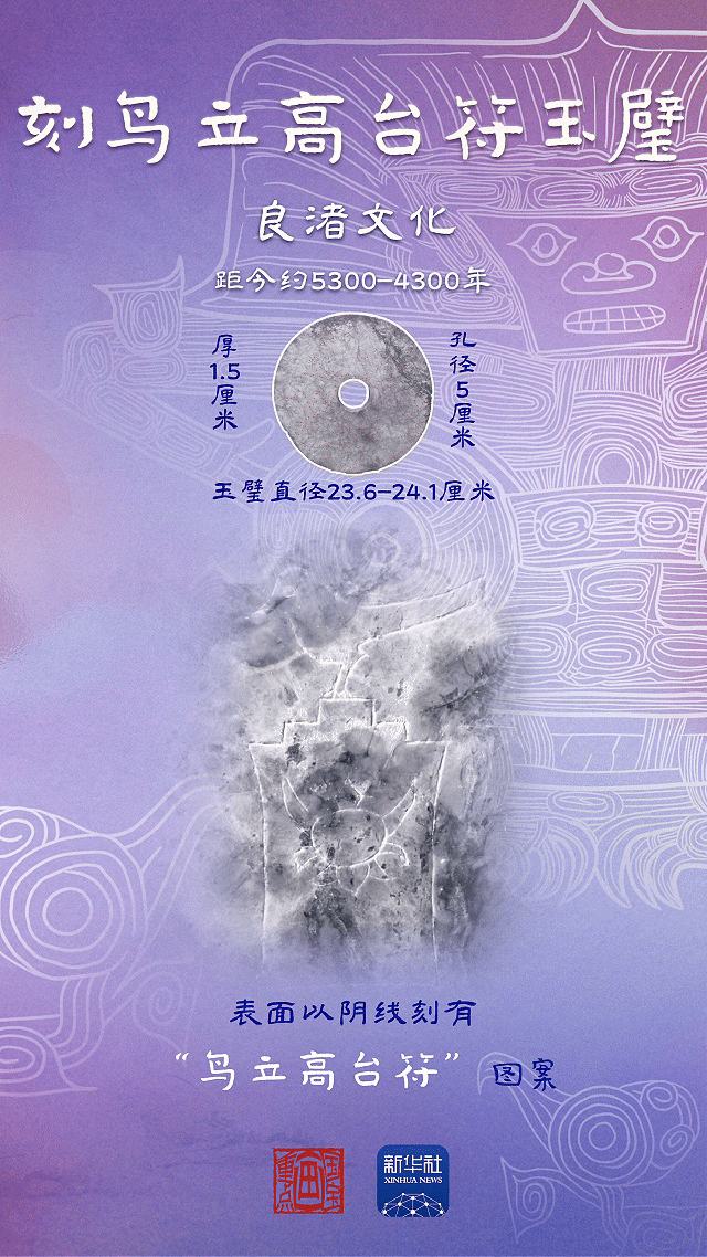 先民视鸟为神的载体和化身,因此鸟也成为了良渚文化图像中最丰富的题材之一。在器类众多的良渚文化玉器中,“玉鸟”独具魅力。许多人在参观良渚博物院时,都会驻足端详这件玉璧,寻找上面的“鸟立高台符”。