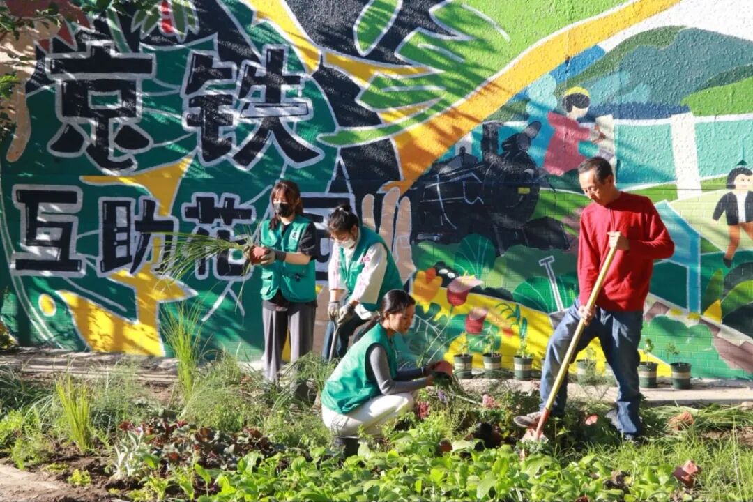 利用回收铁路材料制作43个“记忆容器”景观装置,嵌入二维码链接线上展览,形成散落在社区各处的文化节点,让居民在日常生活中触碰历史;通过多轮居民共创设计、集体建造和自治培育,打造出400平方米的生态花园、97.4米铁路主题彩绘墙及系列景观装置,更构建起“任务认领-积分激励-家庭认养”的长效自治机制,吸引社区居民直接参与,成功推动社区从“被动管理”向“主动治理”转变,生动践行“人民城市人民建,人民城市为人民”的共建共治共享发展理念。