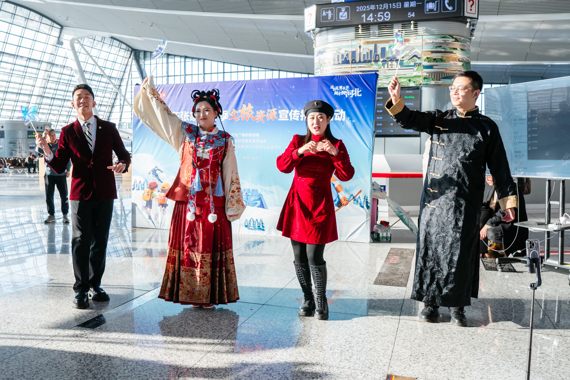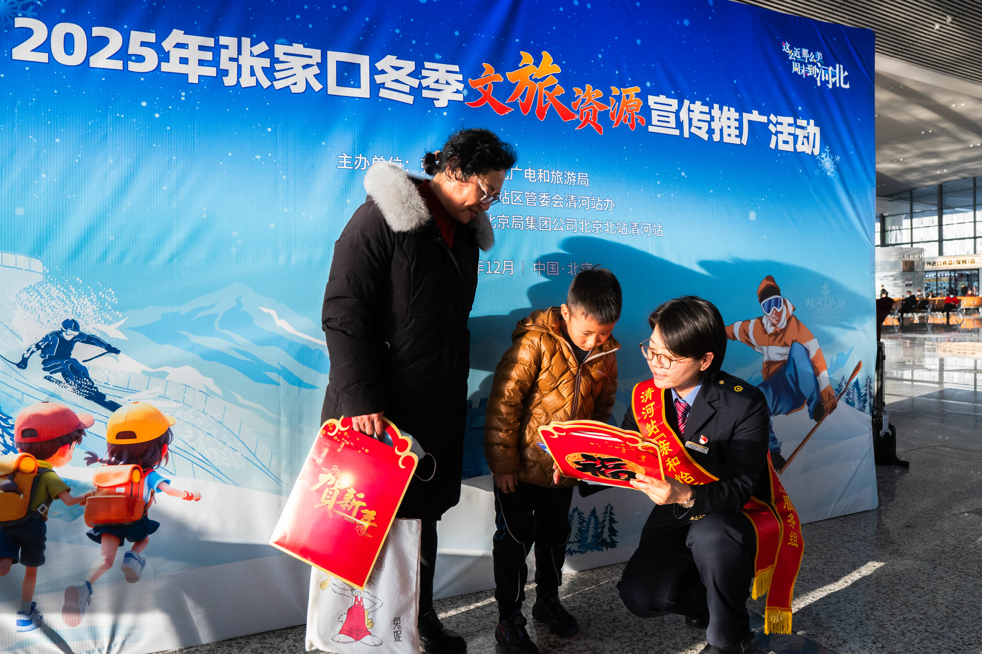 张家口冬季文旅资源宣传推广活动由中国铁路北京局集团公司北京北站清河站、北京市重点站区管理委员会清河站办、河北省张家口市文化广电和旅游局联合举办,为寒冬里的交通枢纽注入文化暖意。此次活动充分展示了张家口冬季旅游资源的独特魅力,也让优质文旅资源通过站区这个“窗口”,更好地传递给过往市民旅客。