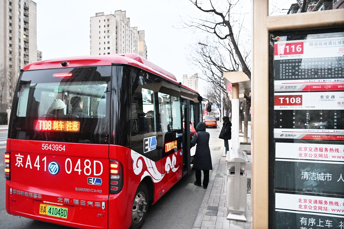第二天,杨光早早来到花石匠小区东站,不到5分钟远远看到一辆红色的小公交驶来,车头上显示着“T108路”。踏上公交车,杨光发现车厢内部堪称紧凑,所有乘客集中在上车后左手区域,右手边则是驾驶室,原来这是一辆长度为6米的小型公交车,更适合在人口密集的地区行驶。“地铁土桥站到了,请您下车。”正在思索间,车辆已经到地铁站了,不到十分钟。就在杨光走上地铁土桥站的天桥时,他不经意间看到,另一趟T108路又进站了。“不仅发车频次高,还又快又安全,冬天坐这趟车上班真踏实。”