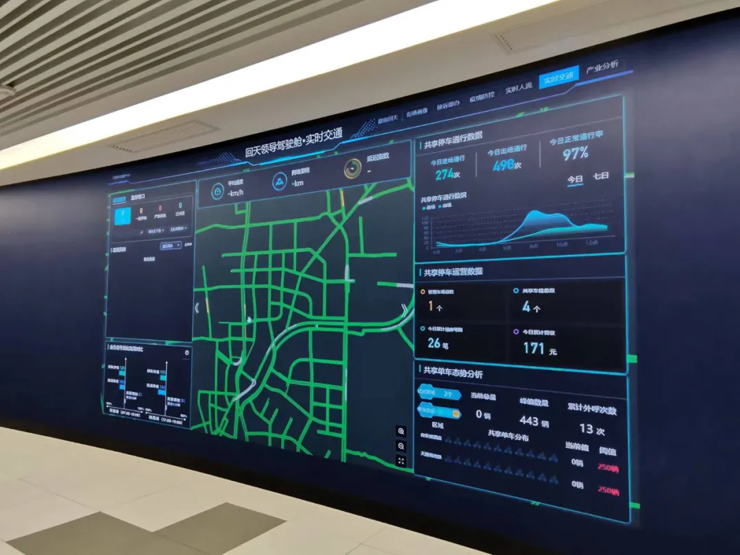 在回天城市会客厅的大屏幕上,基层治理、交通出行、社区管理等多个数据场景交织在一起,实现“一屏揽全局”的整体态势感知,形成“大屏观态势、中屏统调度、小屏优处置”的多端联动应用体系。