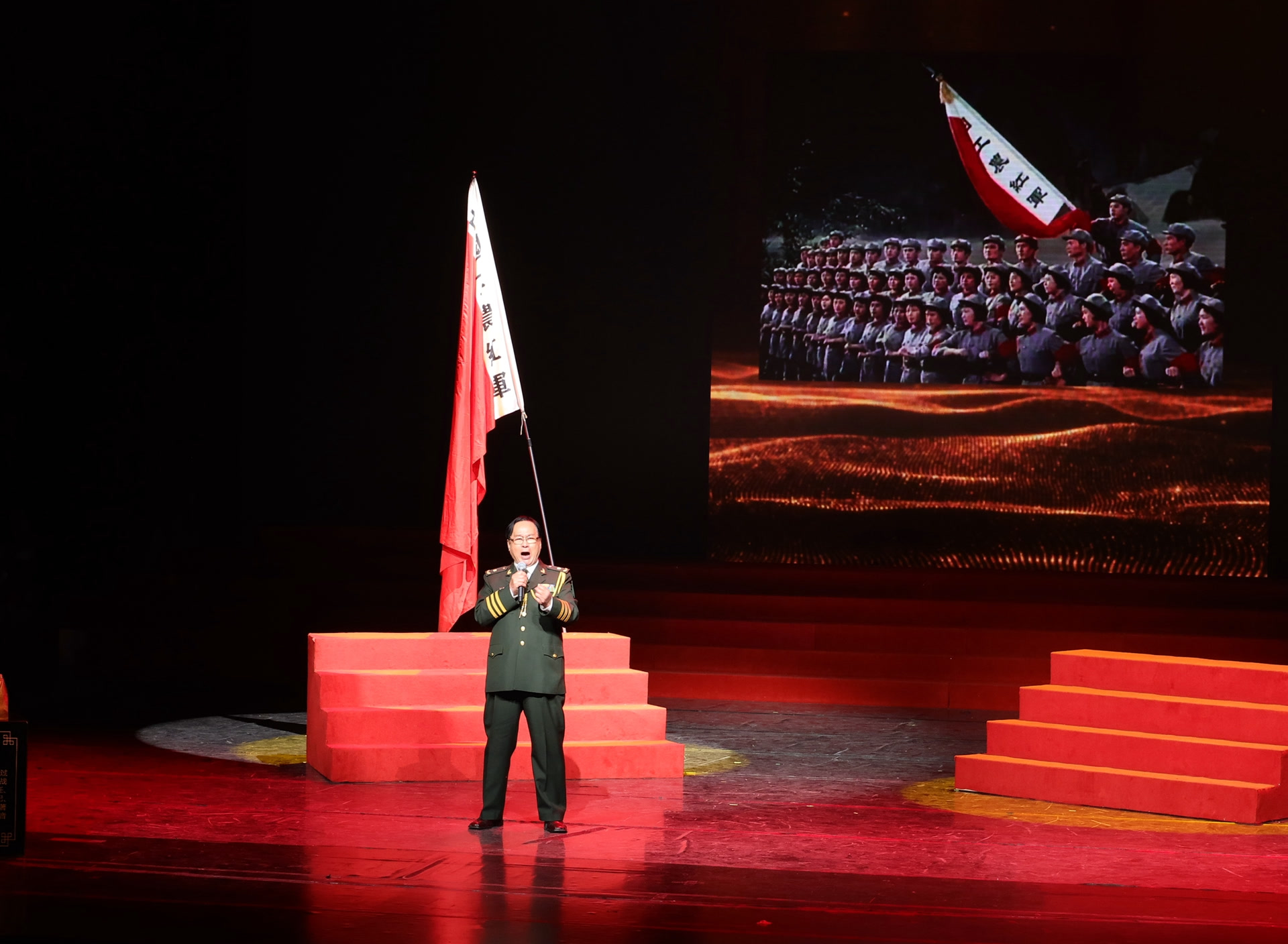 “这是1965年8月1日首演的一张珍贵照片,我就站在旗帜的下面,我叫马子跃,今年81岁。”当歌唱家马子跃以讲述人的身份站在舞台上,用庄重的声音讲述当年的故事,他的思绪回到了60年前。当年,包括他在内的61名歌唱演员,共同完成了《长征组歌》的首演。