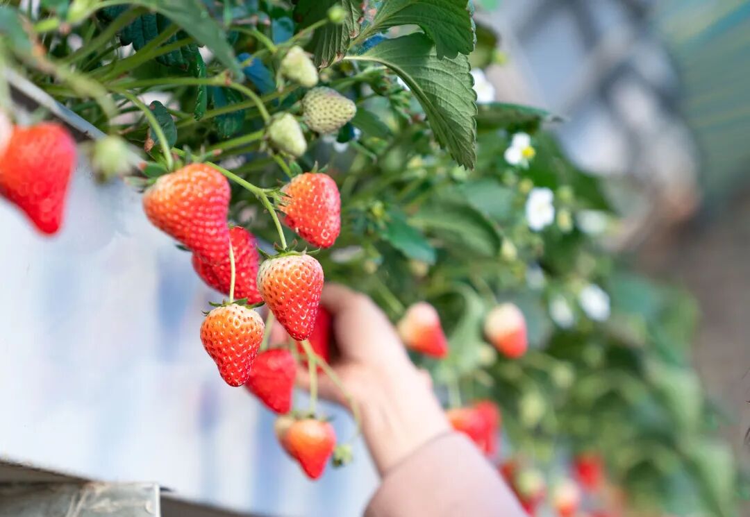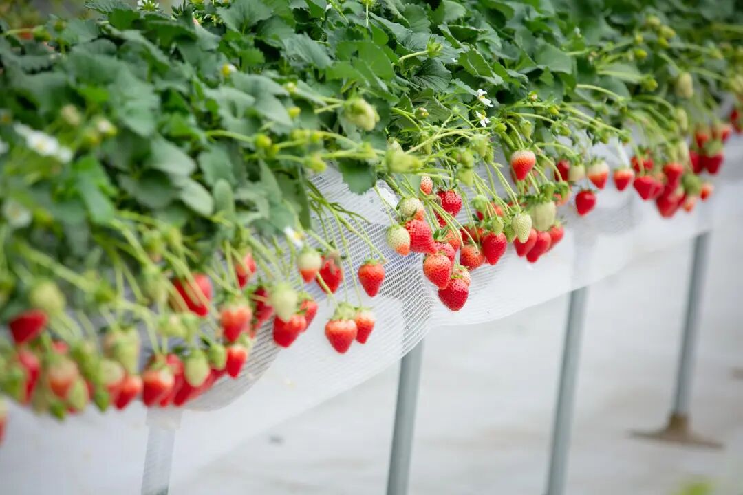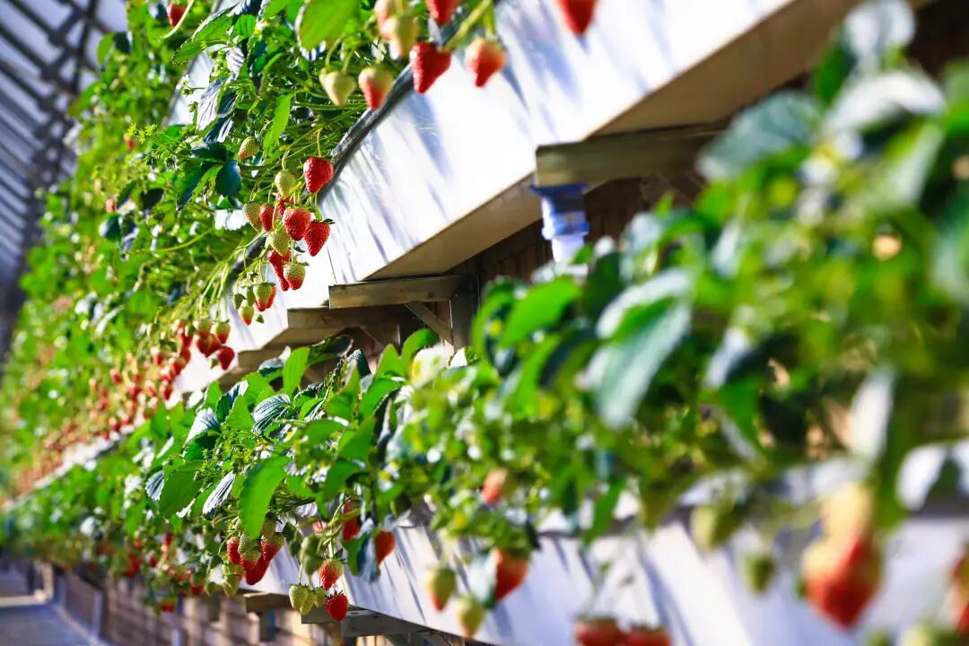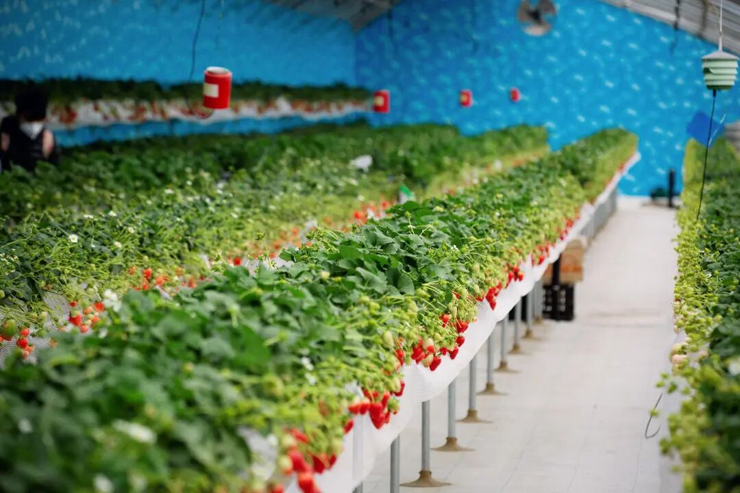 西北旺集体林场销售部负责人赵思怡介绍,林场是业内高架草莓无土栽培的先行者,拥有多年的高架草莓无土栽培生产成熟技术体系。在草莓生长过程中,通过对设施内高精度的环境控制,可以为植株提供最适宜的生长环境,降低病虫害发生。每年园区都会将设施设备与技术双升级。