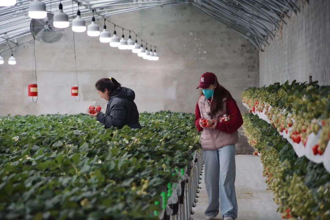 除了现场采摘体验,采摘园还为各大商超、水果店、企业提供批量配送,形成了种植、生产、配送、采摘、农家乐定制的一条龙体系。目前,基地采摘的草莓采摘价为80-90元每斤,零售价格60-70元每斤。