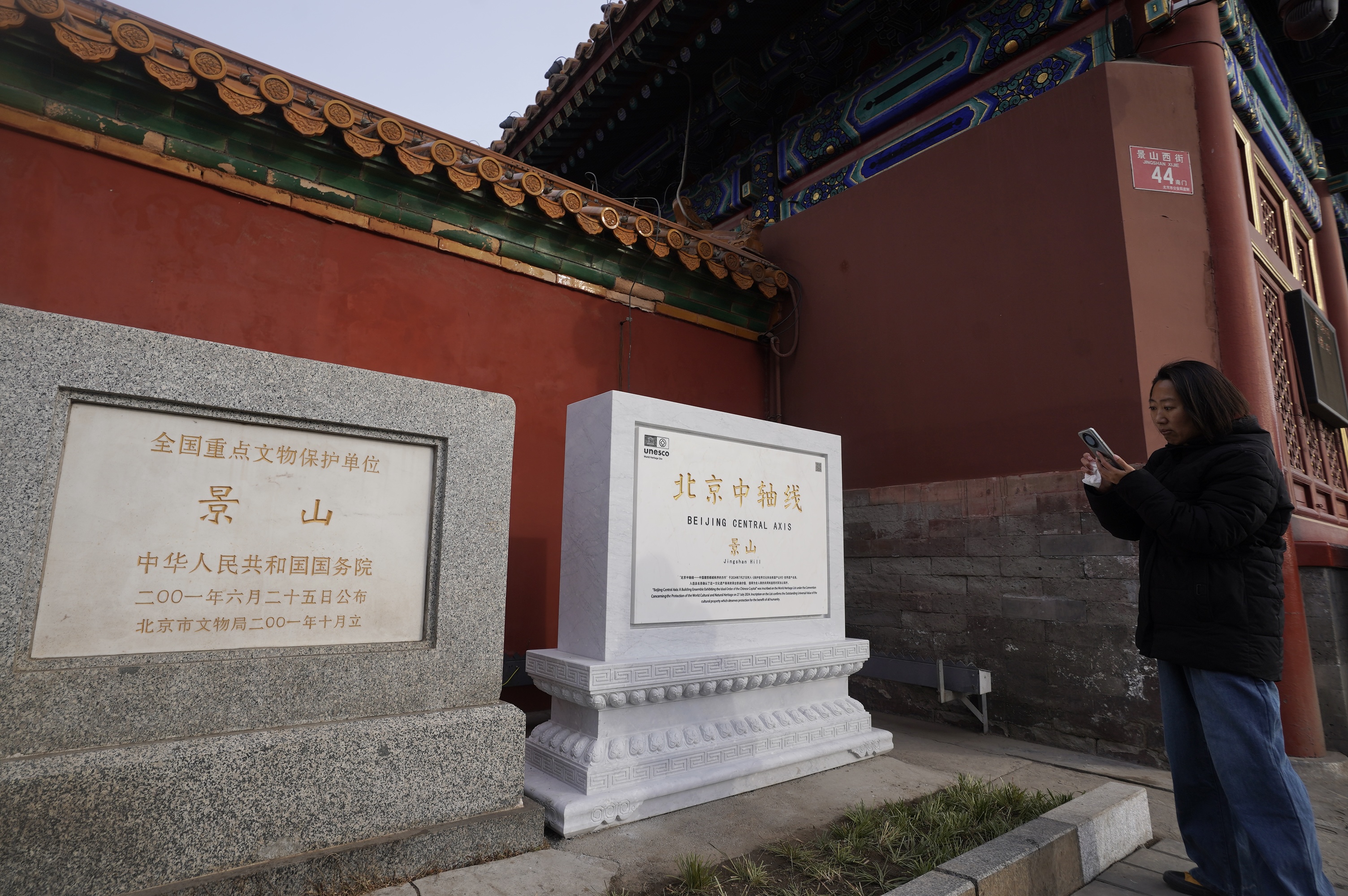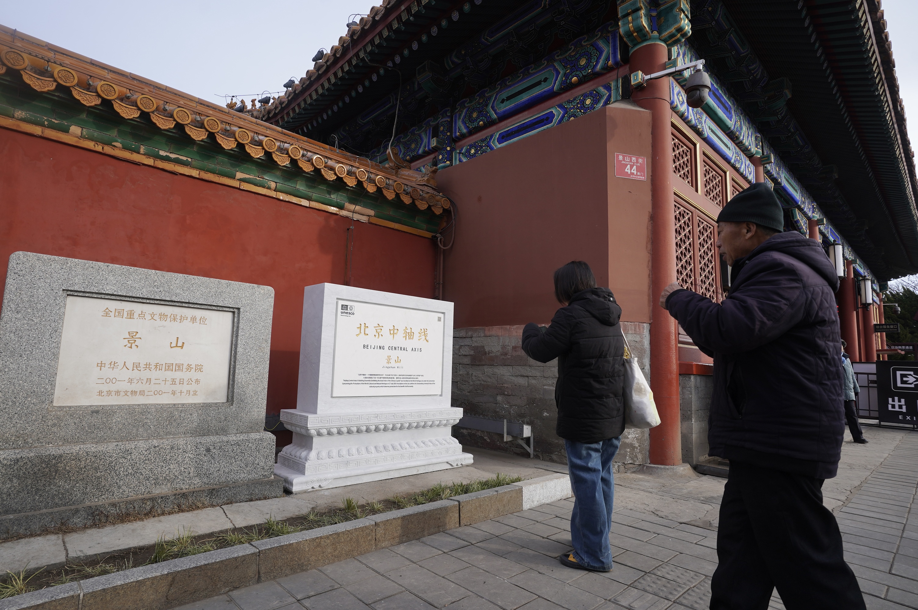 12月16日,北京中轴线世界遗产碑(景山)正式亮相景山公园南门承载着六百年历史的“万岁门”前,与原有的“全国重点文物保护单位”标志石碑并肩而立。