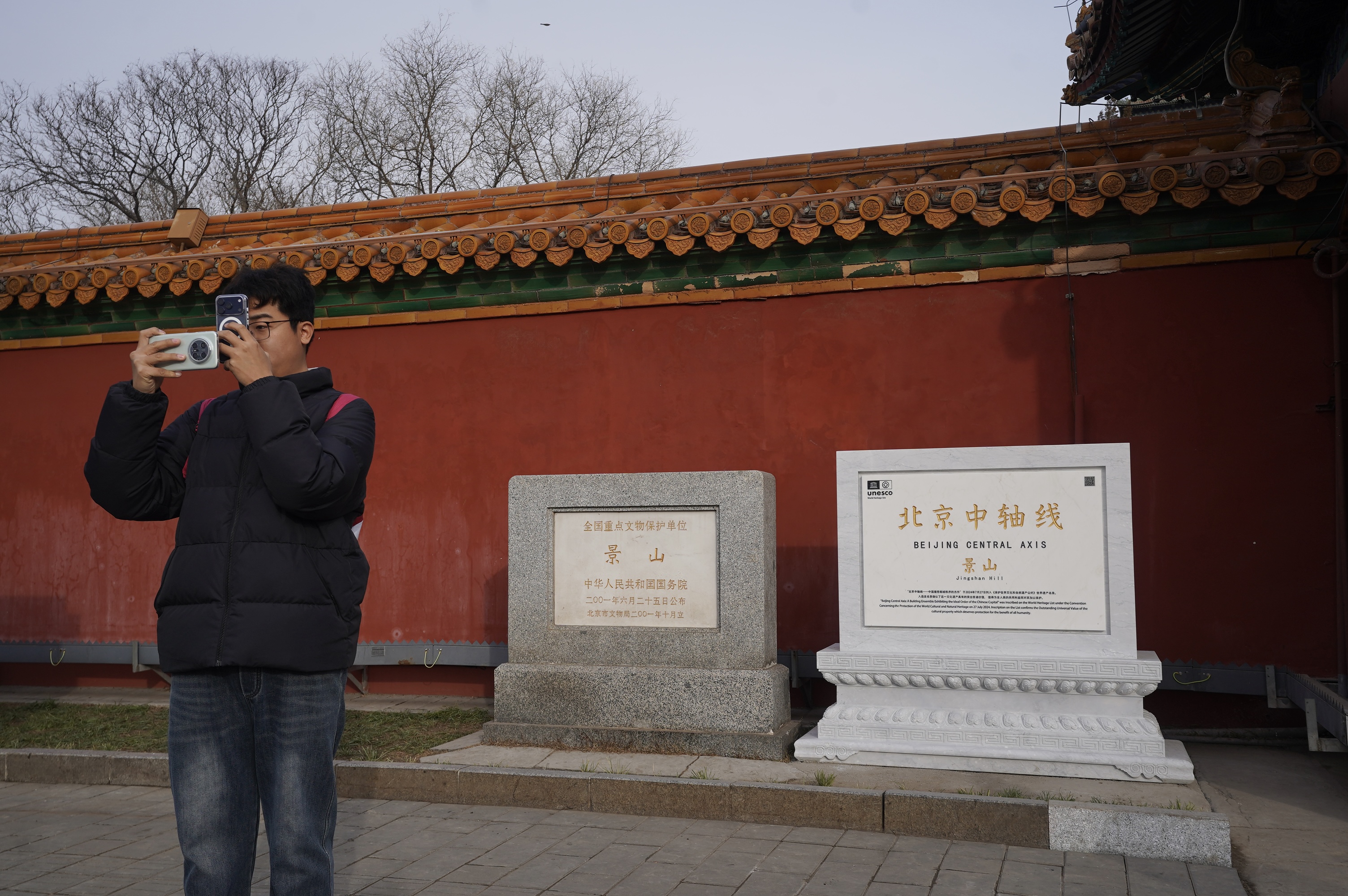 青白石基、汉白玉牌心的北京中轴线世界遗产碑以中英文镌刻“北京中轴线——景山”及UNESCO标识,不仅标志着景山作为中轴线核心遗产点的世界性身份,更串联起从“国家文保”到“世界遗产”的双重荣誉。