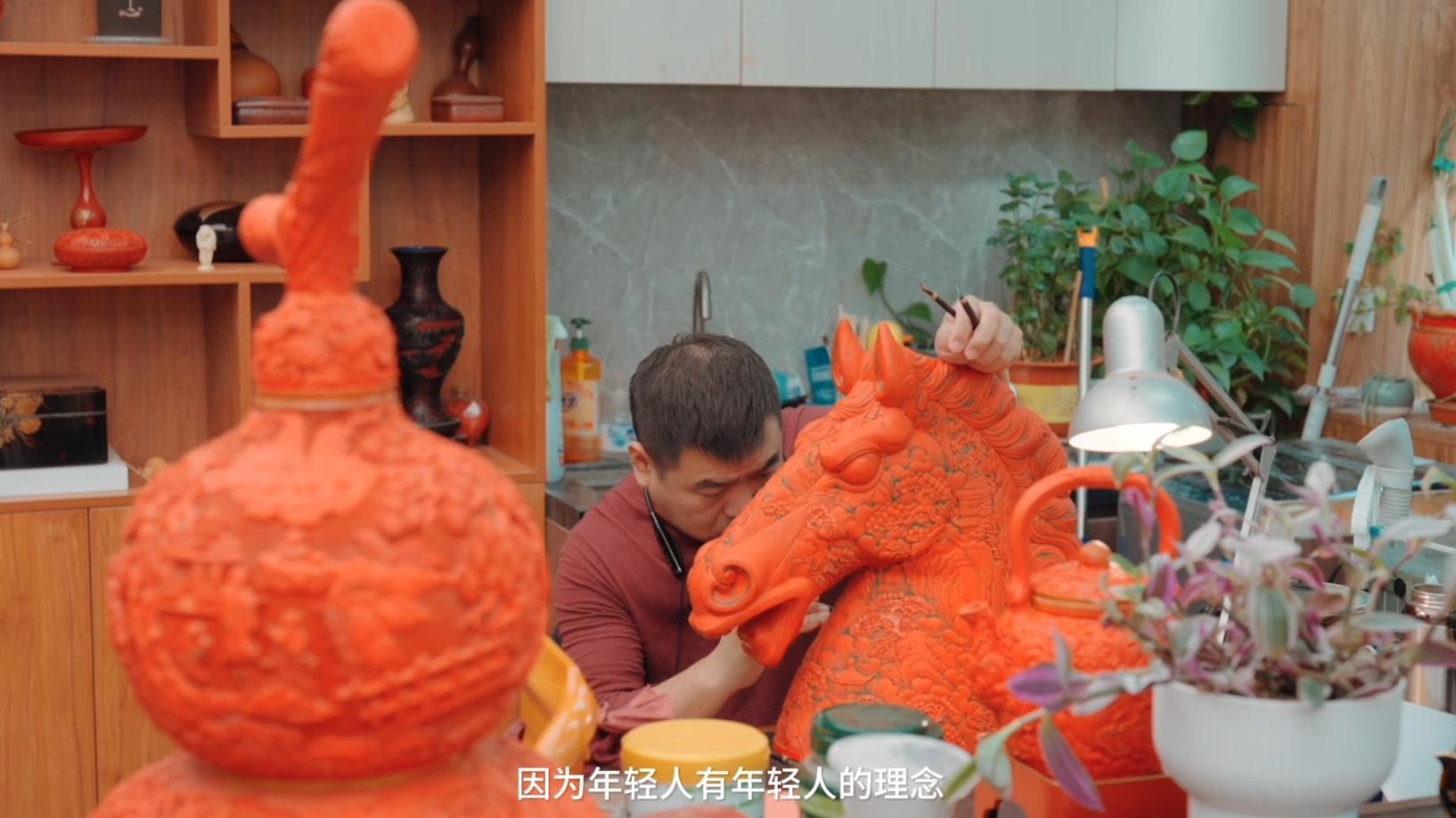 对雕漆的情怀已融入血液的李志刚,选择了逆流而上。他与同伴合伙创立工作室,继续埋首于朱漆与刻刀之间。“这门手艺既费工夫又考验耐心,能坚持下来,全靠热爱。”他说。