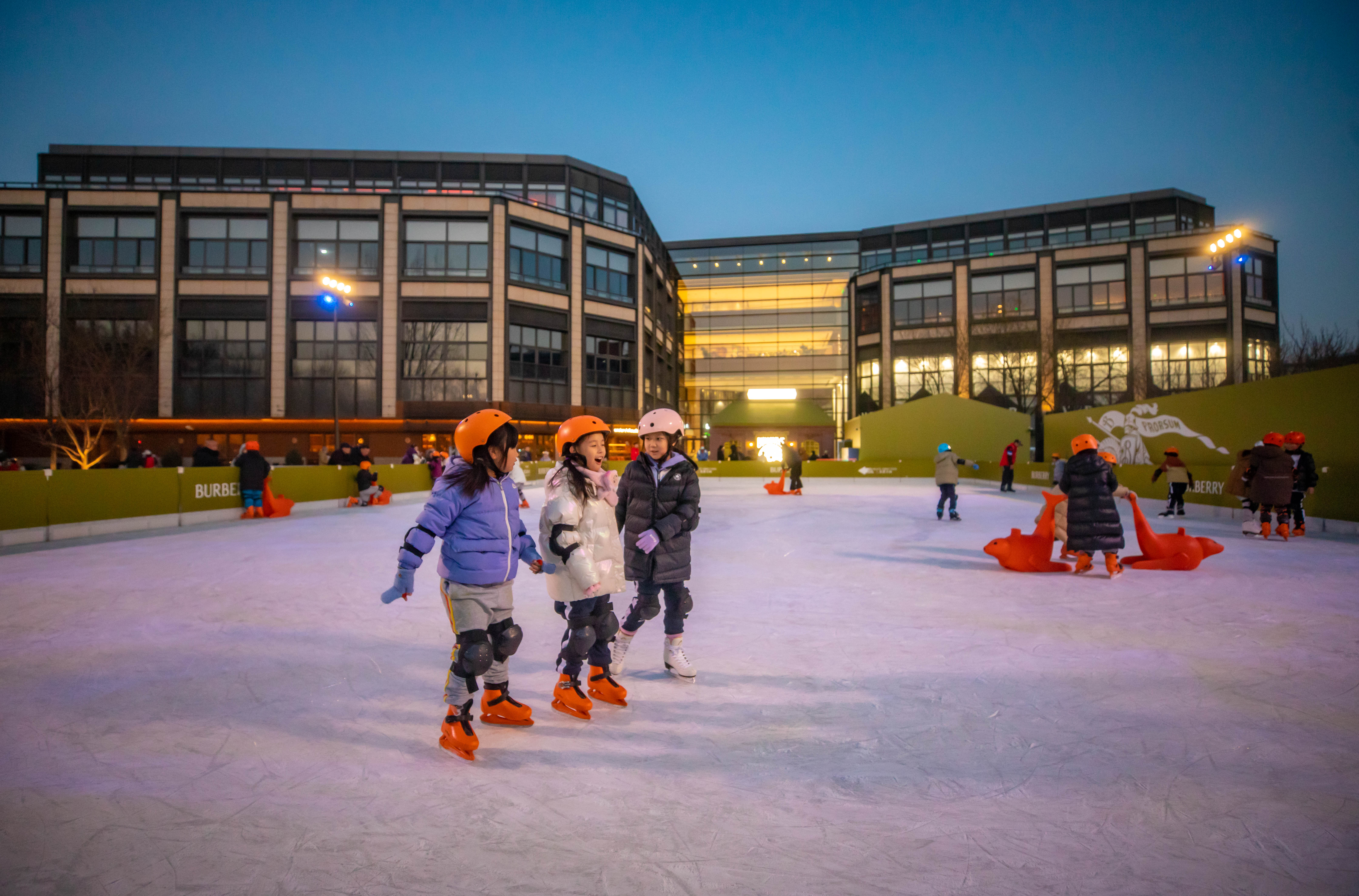 冰场东侧不远处,一间Burberry精品店铺格外醒目。店铺外墙面正中,是一幅品牌经典的时钟图案,成为市民拍照“打卡”的热门背景。“今年来滑冰的年轻人明显多了,高峰期也提前了。”一位冰场工作人员告诉记者,这家冰场已经连续经营六年。“滑冰和店铺消费形成了良性互动,不少人是被品牌吸引而来顺便滑冰。”