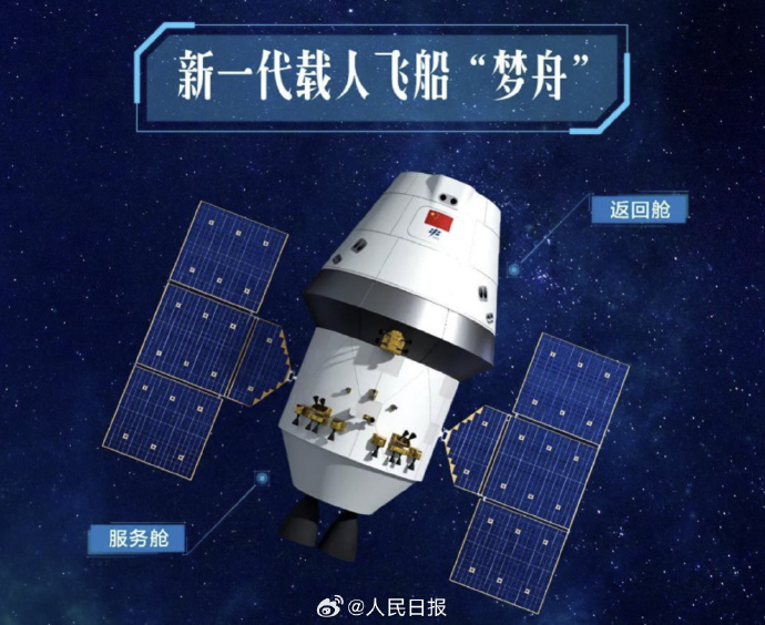 在神舟飞船基础上全面升级研制,采用模块化设计,由返回舱和服务舱组成,未来用于近地空间站运营和载人月球探测任务(登月版型号为“梦舟Y”)。