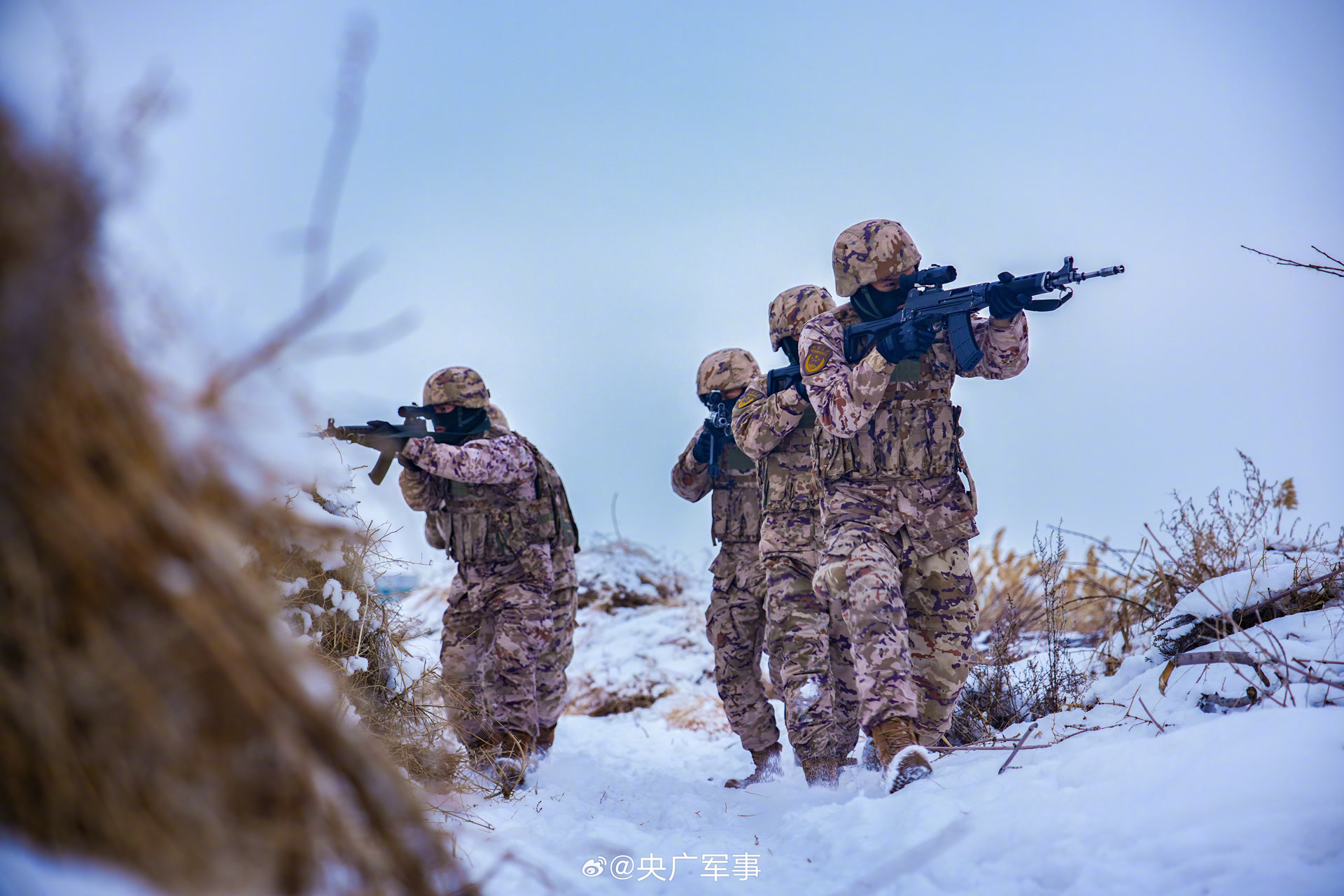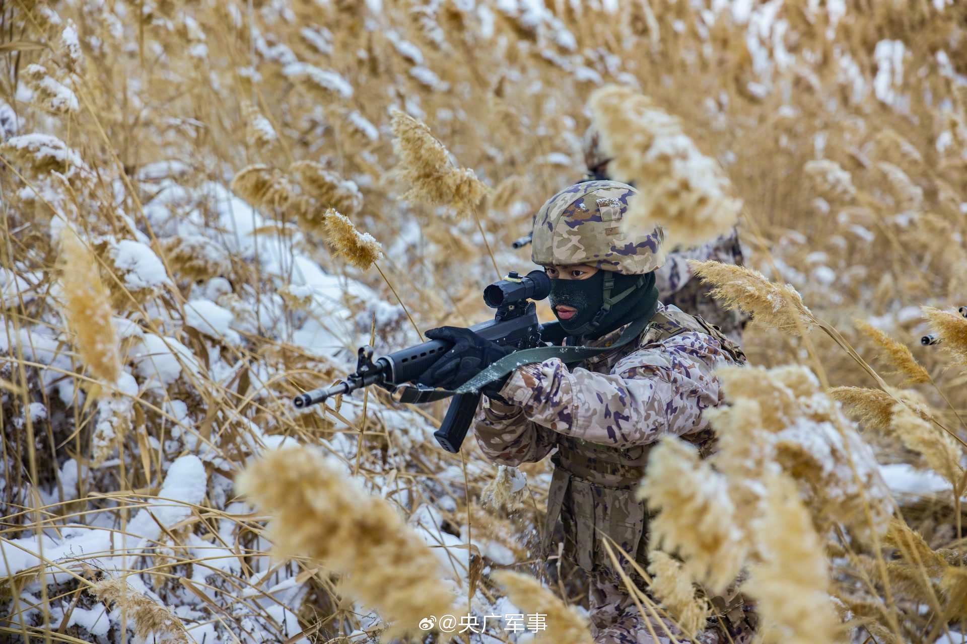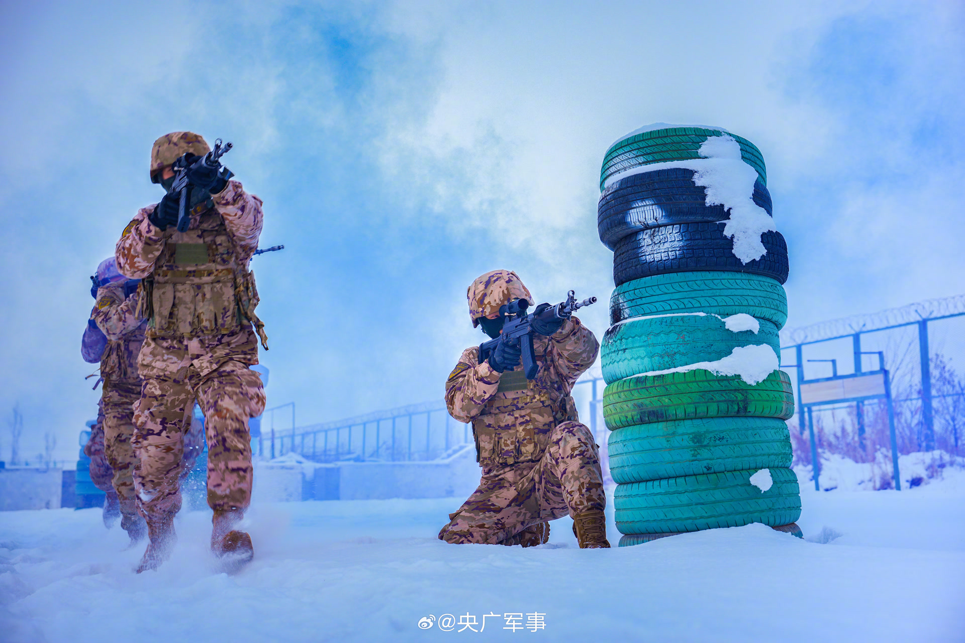 近日,天山北麓气温骤降至-20℃,武警兵团总队某部开展捕歼战斗训练,锤炼部队作战能力。