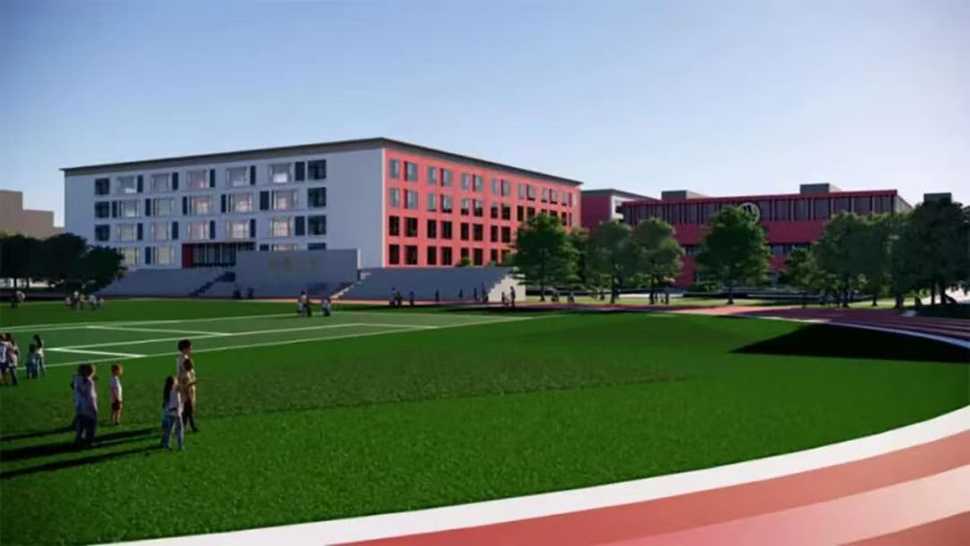 综合教学楼分设初中部和高中部,满足不同学段教学需求;综合楼配备报告厅、风雨操场、食堂、餐厅、音乐教室等多功能空间;同时配套建设学生公寓、标准化田径场,以及室外管网、道路、绿化等附属工程,全方位保障师生学习、生活与运动需求。项目建成后将成为一所环境优美、设施完善的现代化校园。
