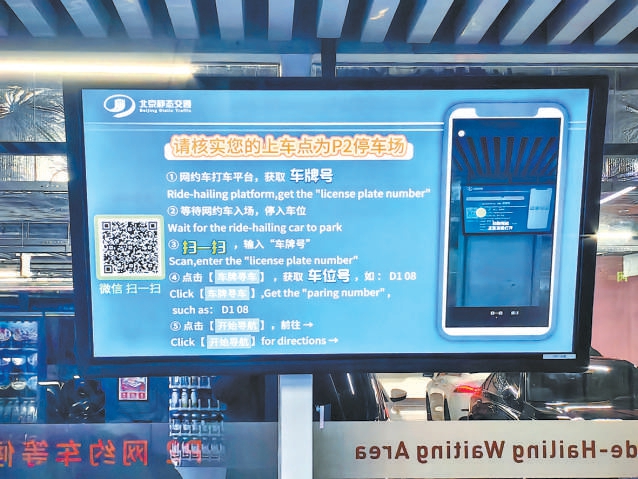 记者在P2停车场看到,地面采用环保防滑材料重新铺装,灯光系统经过优化,亮度均匀舒适,车辆遵循清晰划定的单向循环流线有序通行或候客。在旅客候车区域,数块高清LED智能引导屏实时同步车辆位置,旅客通过微信扫码即可随时掌握车辆轨迹,并辅以清晰的语音播报,实现了司乘信息的无缝对接。