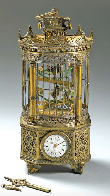 清 雀笼式钟 笼顶有数个菠萝形装饰