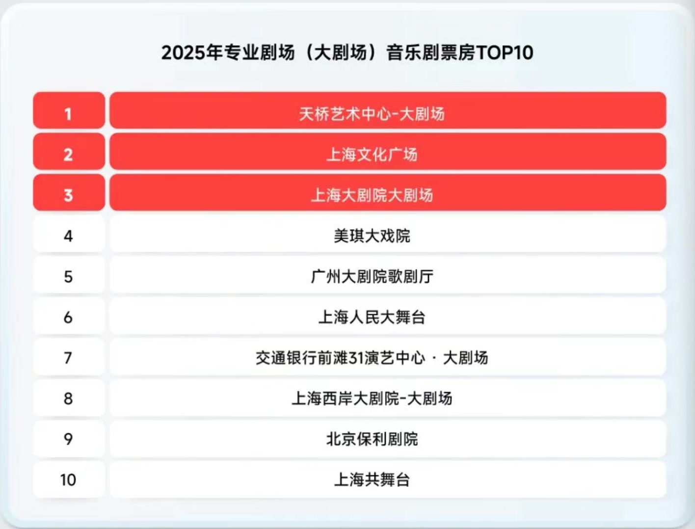 从地域发展的角度来看,京沪两地在中国音乐剧市场中扮演着核心角色。两地基本形成“从孵化到消费”的完整生态链,并形成优势互补的产业协同,共同构建起中国音乐剧发展的“双轮驱动”模式。2025年两地合计贡献全国音乐剧演出票房的60%,近一半的演出场次,汇聚全国超六成的音乐剧观众。