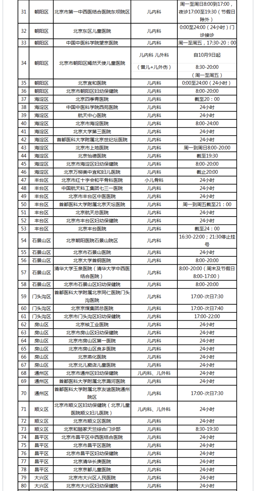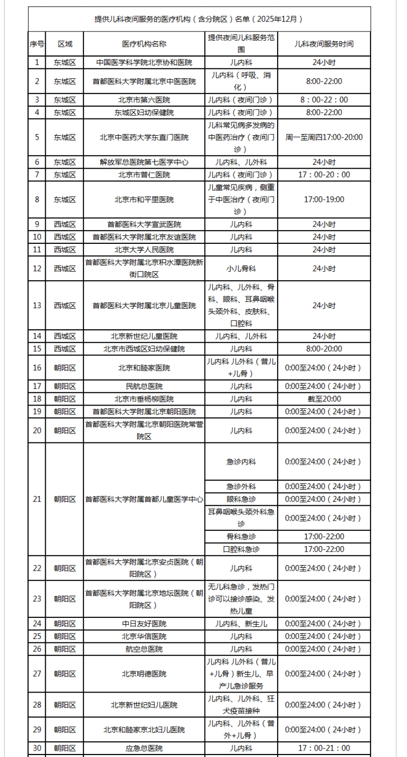 【提供儿科夜诊服务医疗机构名单】