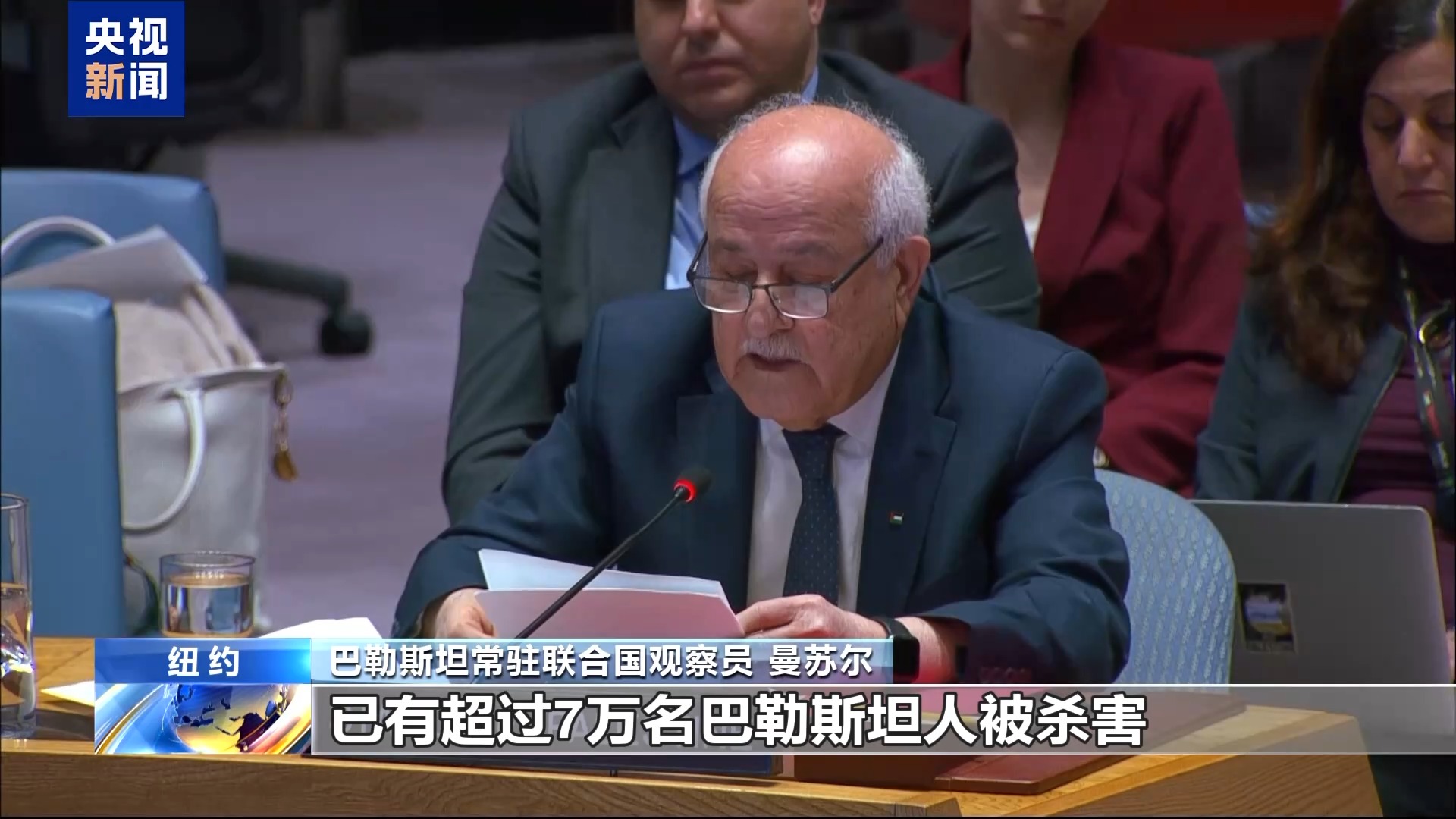 巴勒斯坦常驻联合国观察员 曼苏尔:已有超过7万名巴勒斯坦人被杀害,数十万人受伤或致残,数千人被扣押,整个民族被迫流离失所并遭受饥饿。有一个数字尤能体现这种苦难的深度,在以色列进攻的最后几个月中,加沙在出生当天即死亡的婴儿数量比这场针对我们人民的战争爆发前高出75%。正因如此,没有任何人比加沙的巴勒斯坦人民更欢迎停火,然而以色列至今仍未真正实现停火。