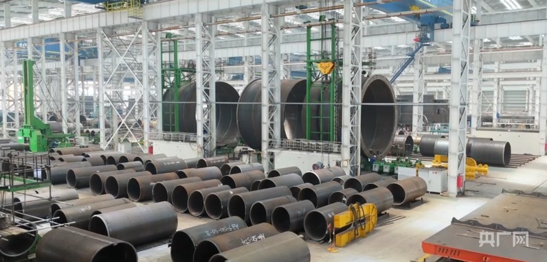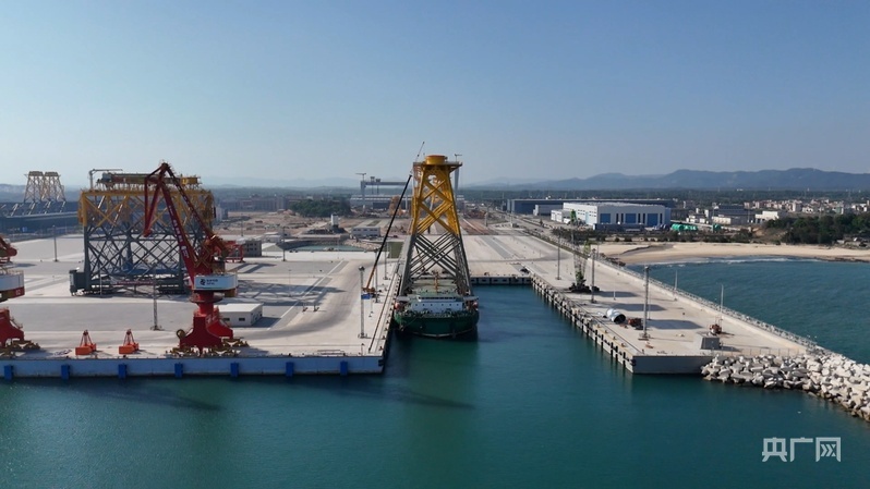 走进距离码头不远的风机装备制造基地,记者看到车间里火花四溅,巨型钢结构部件正逐步成型。“作为风机的重要零部件,重达2000吨的导管架,以前我们一天最多装卸一台,现在有了龙门吊和嵌入式港池的通力协作,一天能装三台,效率翻了三倍。”园区风机装备企业相关负责人黄燕群介绍。