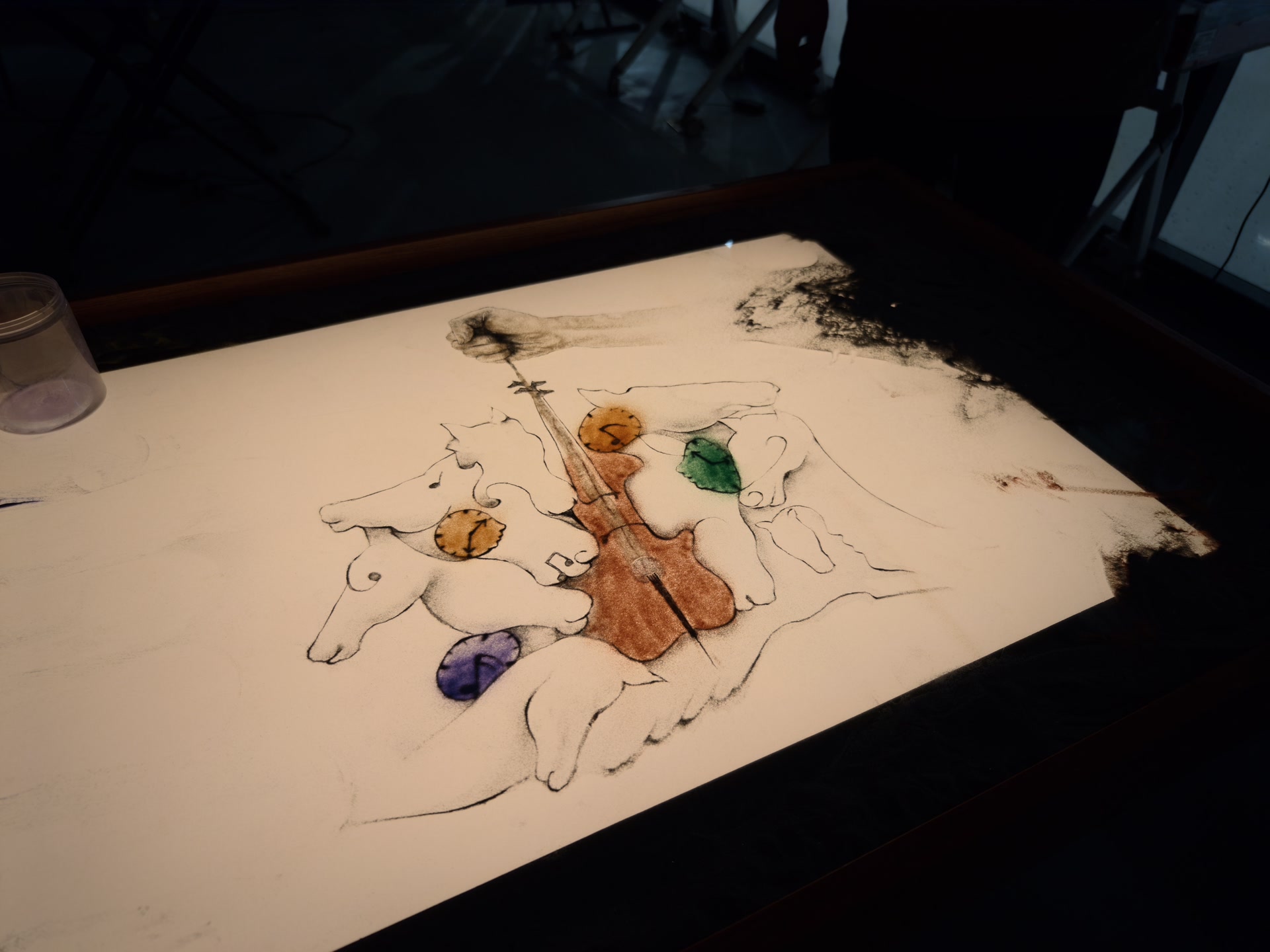 为了此次演出,王楠团队创作了沙画视频主图、定格动画等素材5000余幅,目前素材所占储存空间已超3500G,团队正在进行后期制作。正如本次演出导演叶逊谦所说,“在这个AI技术无处不在的时代,科技感已不稀奇,而完全依靠双手创作的沙画,反而能带给观众最直接、最触动人心的美。正如音乐必须由乐手现场演奏一样,艺术的现场感正是这样诞生的。”