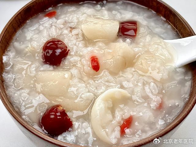 莲子、百合、枸杞子、粳米洗净煮粥,小火煮至浓稠,再加入少许红糖调味。