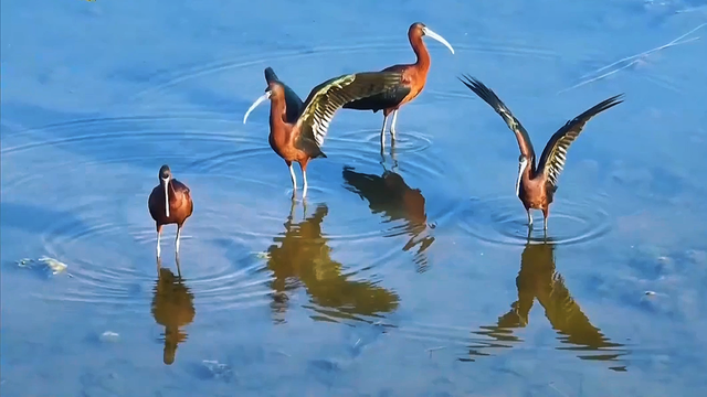 水质的提升,催生出河、淀、草、鱼、鸟和谐共生的完美生态链。水生植物肆意生长,水生动物日渐繁茂,为鸟类提供了充足的食物与安全的栖息地。如今白洋淀野生鸟类已增至 296 种,较雄安新区设立前增加了 90 种。除了青头潜鸭与震旦鸦雀,曾被认为在中国绝迹的彩鹮组团现身,国家一级保护动物大鸨也来此越冬。