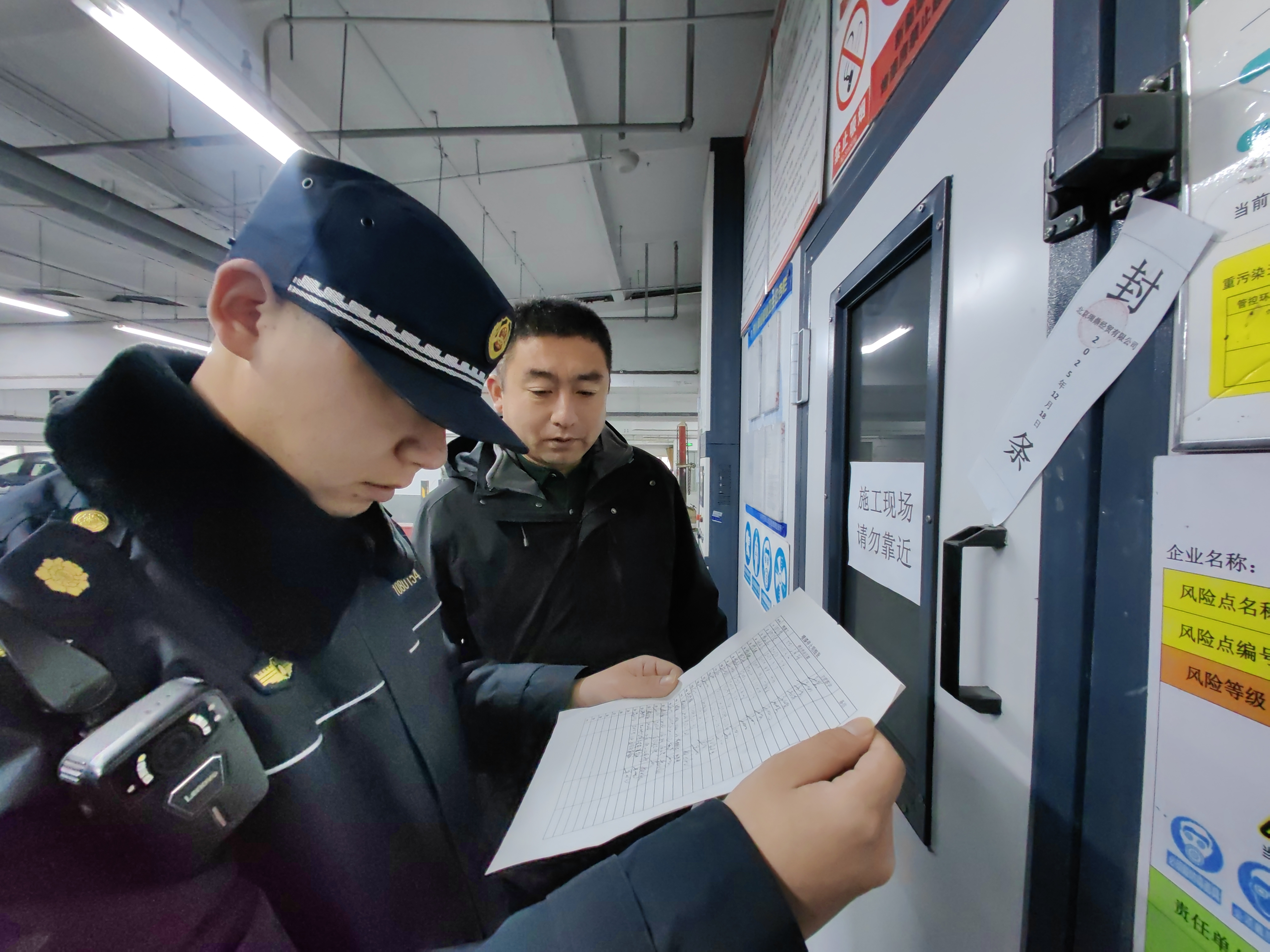 在对某汽修企业检查时,执法人员着重查看废气处理设施运行状态、使用记录,以及危险废物储存、处置情况。工作人员要求企业严格遵守黄色预警期间管控规定自主减排,叮嘱企业做好污染防治设施的日常维护保养,规范记录各类台账,确保污染治理设施稳定运行、达标排放。