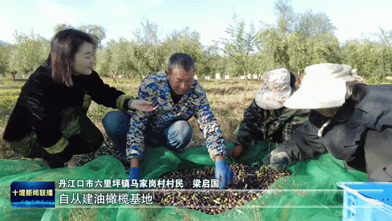 走进位于丹江口市六里坪镇的兴源生油橄榄种植基地,枝头挂满果实,村民们正忙着采摘,一派繁忙的丰收景象。