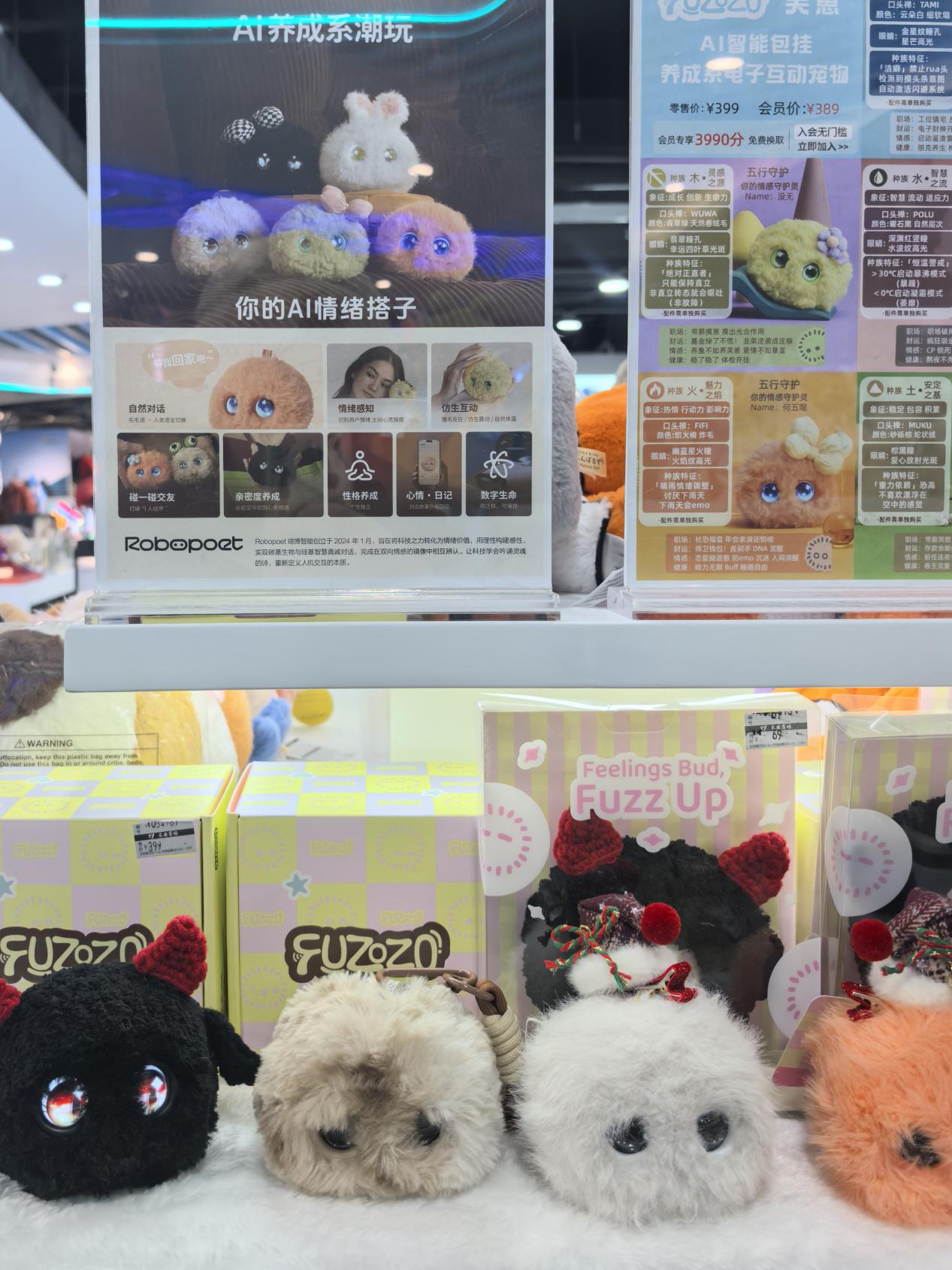 在线下市场,AI玩具的热度也持续攀升。西二环旁的商场里,一家数码产品店铺上架了多款新品。“AI养成系潮玩”“你的AI情绪搭子”……货架上,一排萌态十足的小毛球格外抢眼。“这款只要三百多块钱,特别受欢迎,它能感知情绪,性格会越来越像主人,撸毛的时候还有反应。”店员打开手机向记者展示,“瞧,这上面还能看到它写的日记!”
