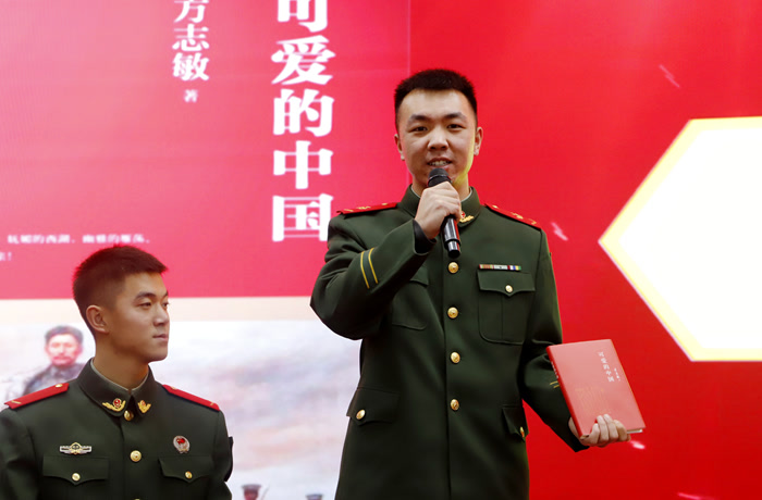战士卢少秋讲述革命先烈舍生取义的壮烈事迹,声音哽咽:“今天的幸福生活,不是理所当然,而是有人替我们负重前行。”