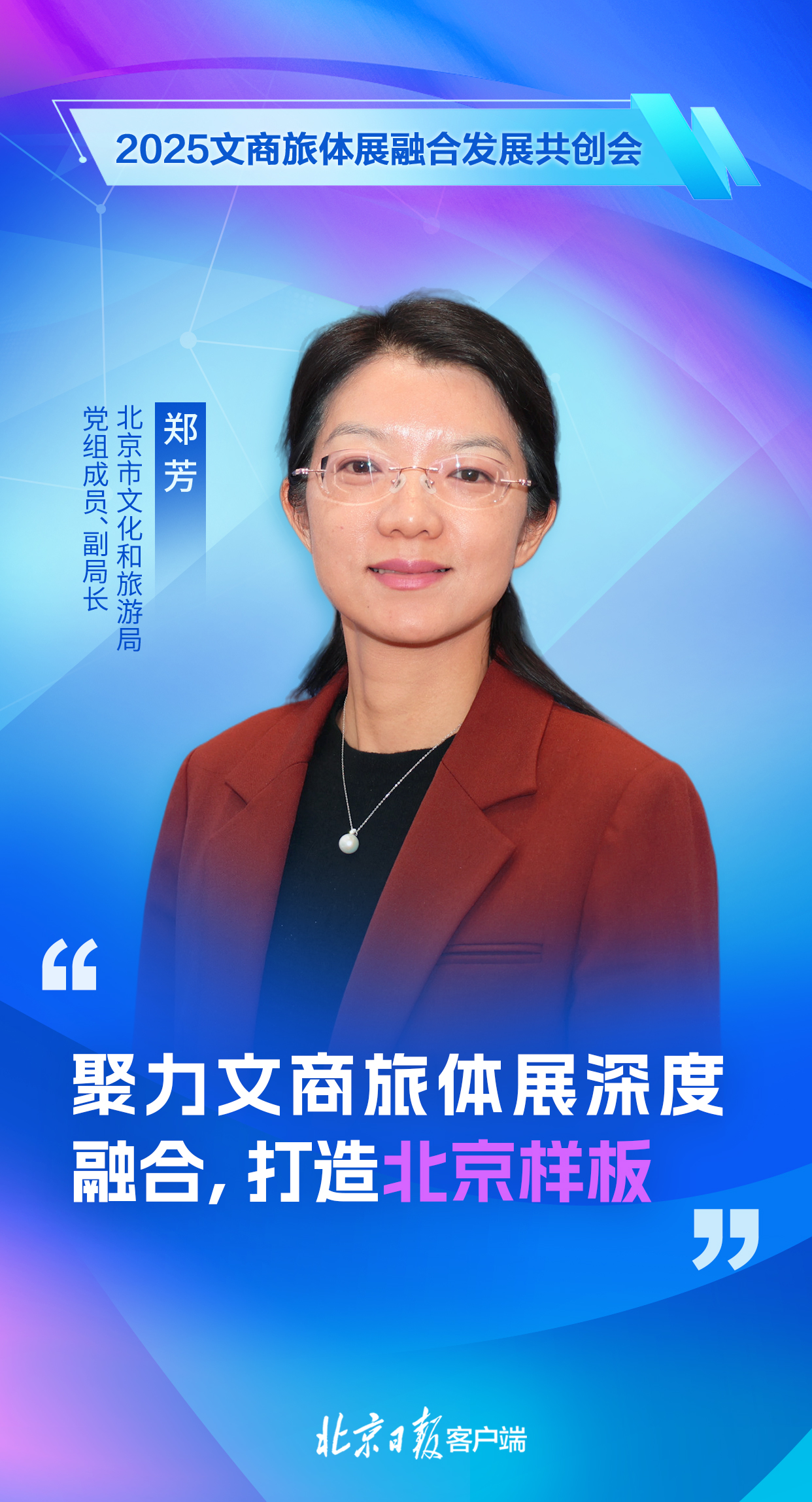 12月18日,北京市文化和旅游局党组成员、副局长郑芳在北京日报社主办的2025文商旅体展融合发展共创会上表示,近年来市文旅局为推动文商旅体展融合发展,在活动牵引、品牌打造、产品供给、宣传推广、政策创新等多维度不断创新,为文商旅体展融合提供了“北京样板”。