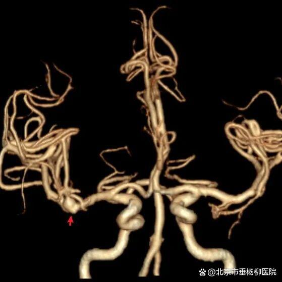 ▲CTA显示右侧大脑中动脉分叉动脉瘤