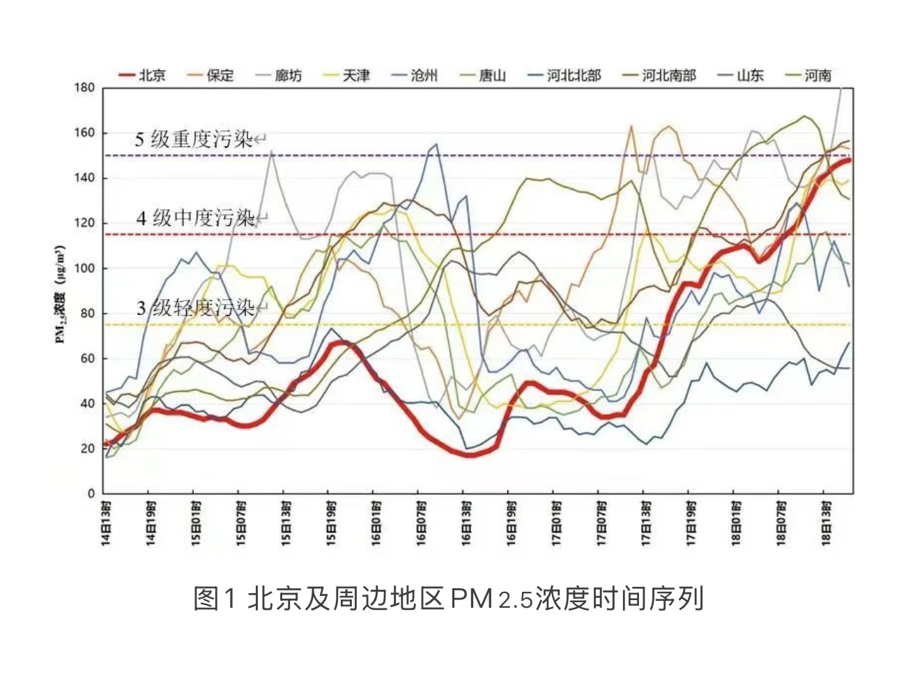 今天,北京仍处于空气污染过程中。记者了解到从12月15日开始,京津冀区域发生了一次空气污染过程。期间,北京PM2.5浓度在17日上午仍保持优良水平,随着17日下午转南风,南部高浓度污染物传输进京,导致北京市浓度迅速抬升,在16时浓度达到79微克/立方米,为轻度污染水平;18日8时浓度达到116微克/立方米,陷入中度污染,16时PM2.5浓度继续升至148微克/立方米。