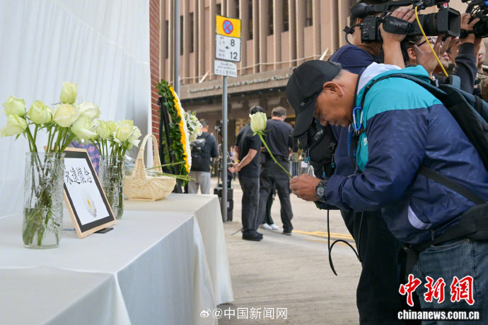 灵堂内外摆放着各界致送的花牌,包括全国政协副主席梁振英、香港特区行政长官李家超,以及香港特区政府政务司司长陈国基、律政司司长林定国、保安局局长邓炳强、消防处处长杨恩健等人。