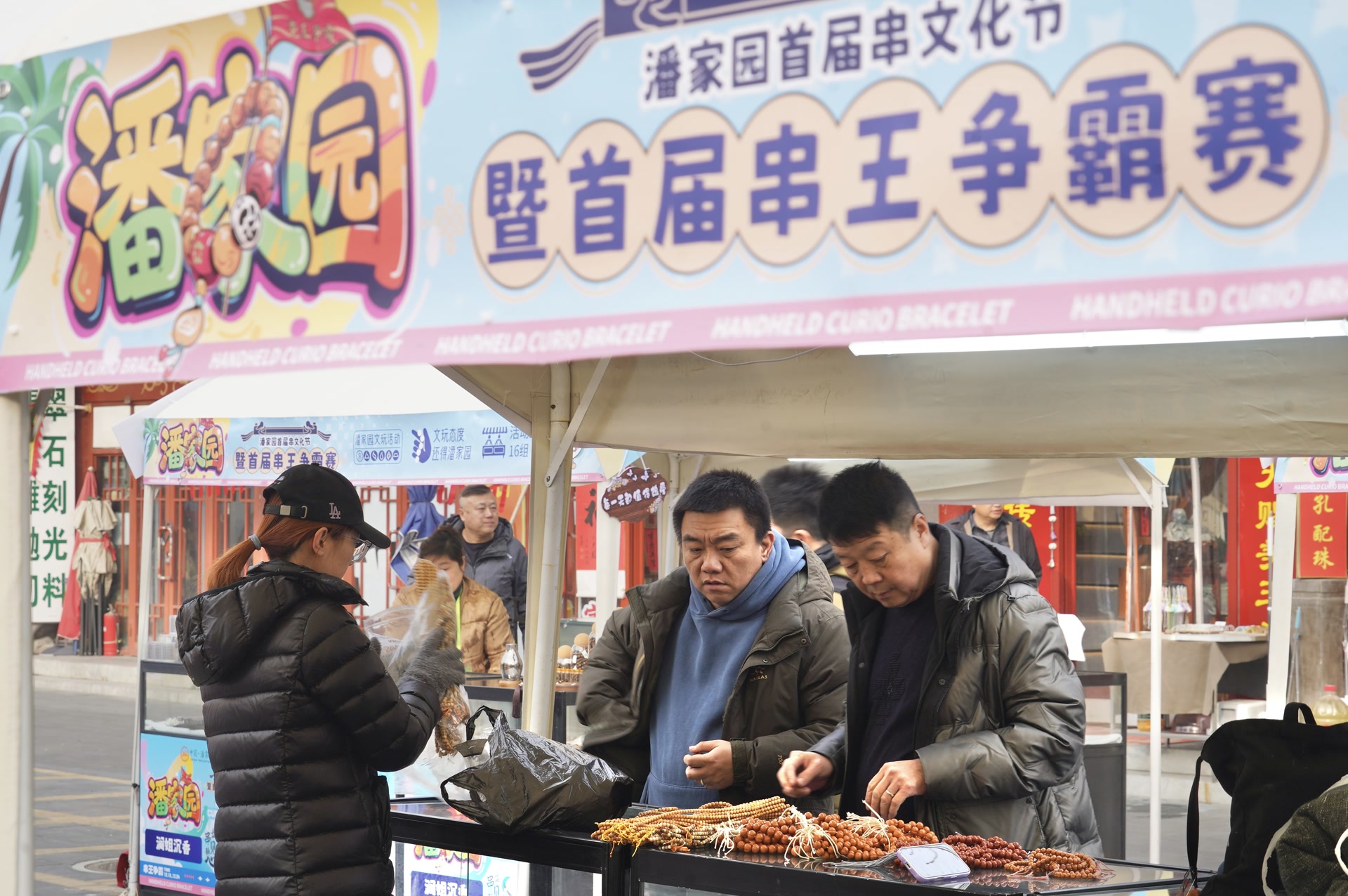 作为活动的重头戏,潘家园首届串文化节暨串王争霸赛颇具看点。主题市集和特色摊位让市民游客深度体验串文化,串王大赛“十大名串”则让各位“串友”一饱眼福。