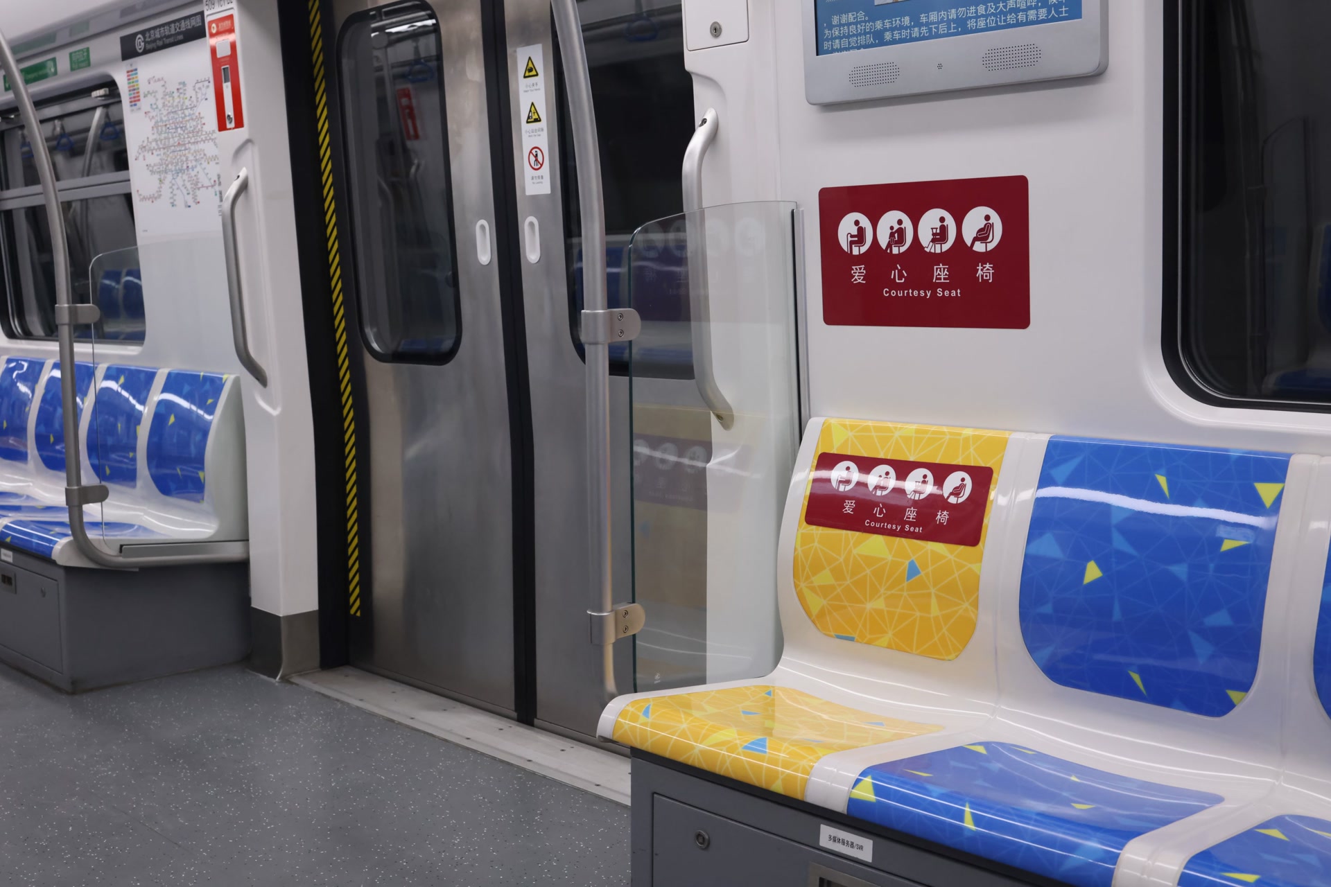 张贴特色醒目标识,方便乘客寻找。为进一步方便各类乘客出行,车站在距离列车轮椅区域最近的站台门处,张贴颜色鲜明的“轮椅候车”标识,方便轮椅乘客快速查找乘车位置,便捷出行。除了车站中的精心设计,在17号线列车上,每节车厢中均设置了8个“爱心座椅”位置,每个“爱心座椅”靠背和对应的墙面上,都张贴有醒目的红白配色标识,方便有需要的乘客找寻。