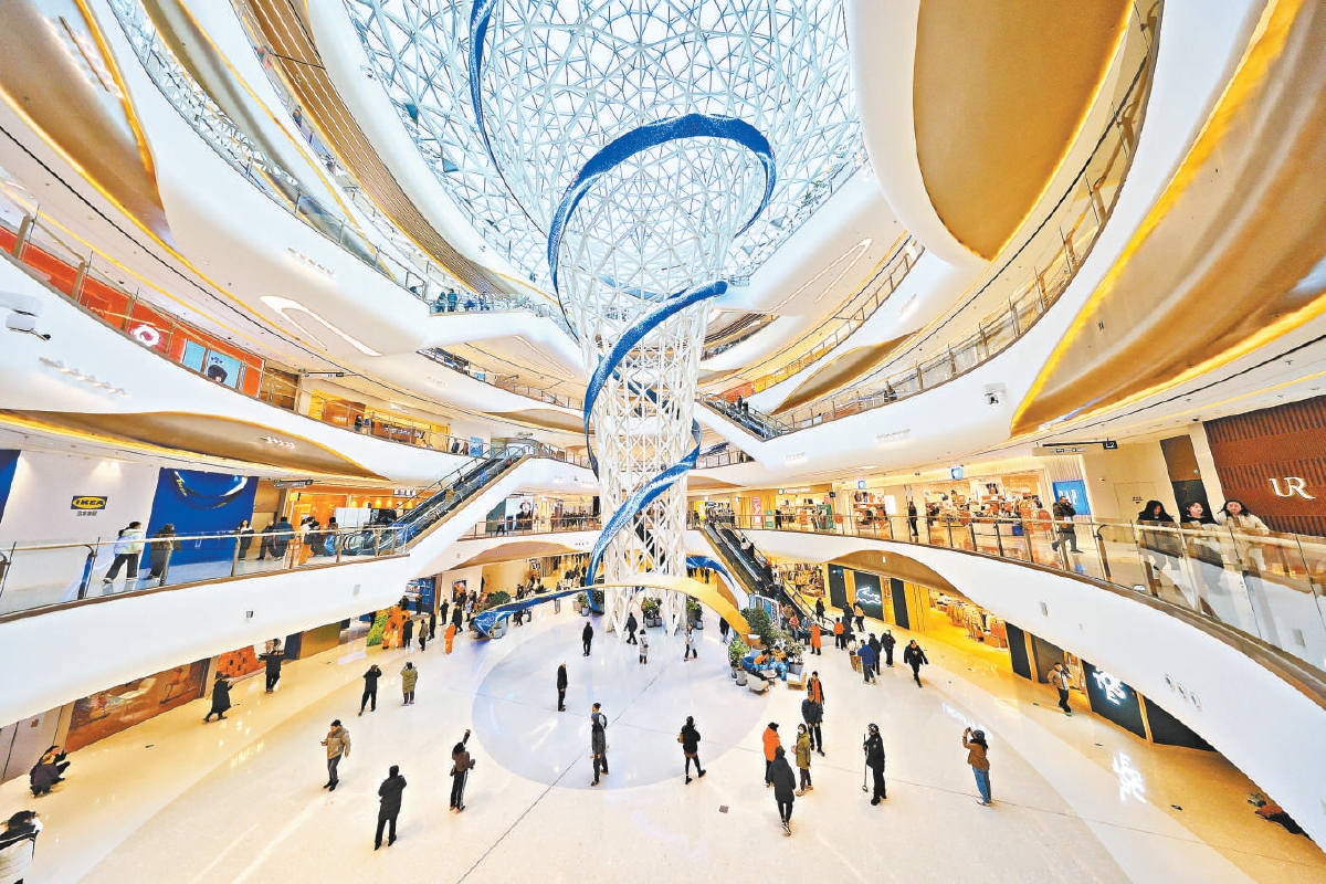 上午10时,商场区域大门打开,不少顾客举着手机,直奔三大中庭——光之境、水之境、天空之境。灯光与空间巧妙呼应,呈现出梦幻色彩,瀑布水流从30多米高倾泻而下……“真的像效果图一样梦幻。”家住通州梨园的刘女士说,正好今天自己休息,先进来逛逛,准备带全家来“湾里”吃晚饭。
