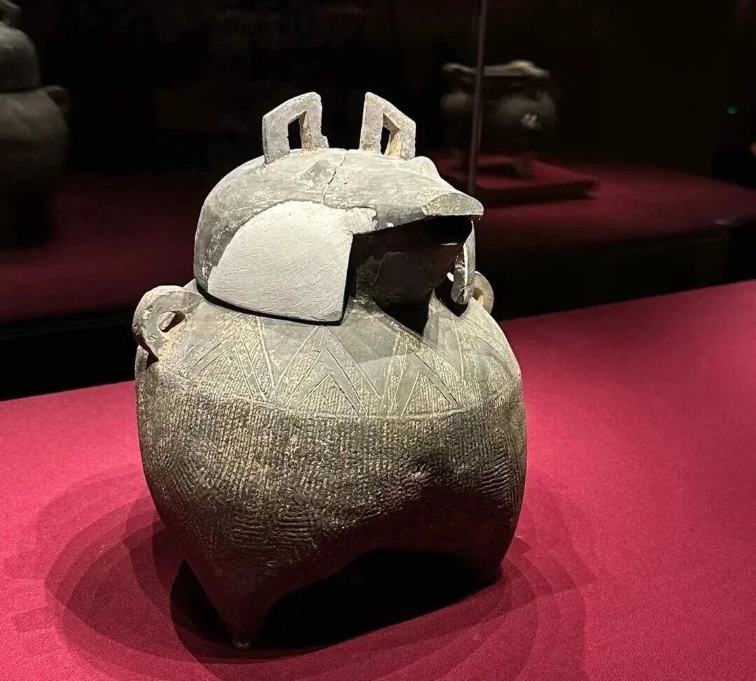 其为温酒的容器,美酒加热后可从它口中流出,既没有因造型设计削弱实用功能,又凭借灵动猪首造型增添了几分神韵,将商代晚期高超的制陶工艺展现得淋漓尽致。原来三千多年前的殷商先民,就已经拥有如此可爱的“猪猪美学”。
