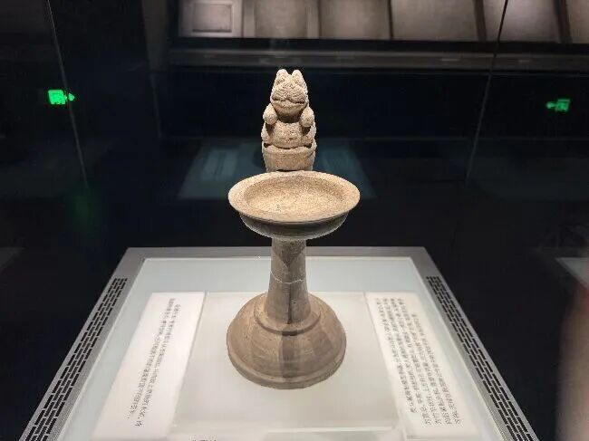 汉魏洛阳城遗址博物馆有一件西晋陶熨斗,由熨斗和支架精巧组合而成,顶端有一只长着圆圆脑袋的虎形小兽,前爪微伸的姿态仿佛正在向现代人招手,萌萌的外表让人忍不住想伸手互动。