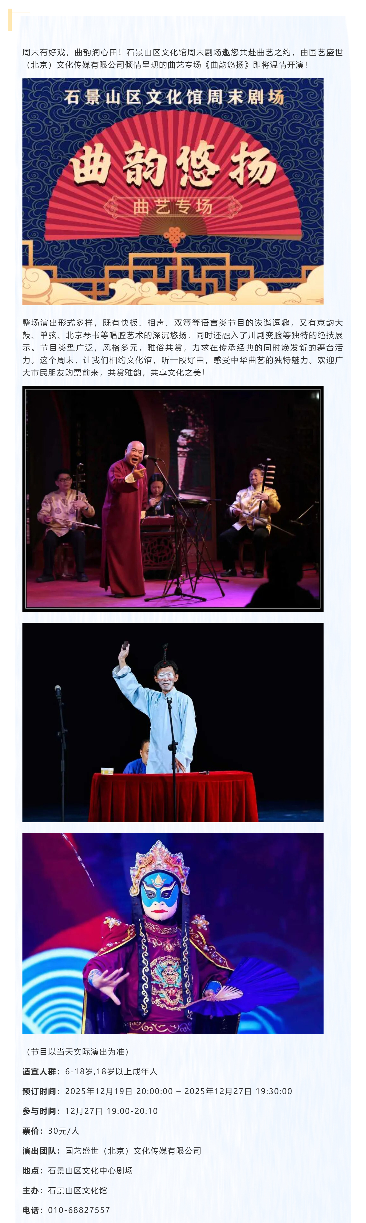 周末去哪儿玩?文化馆邀您听曲儿!《曲韵悠扬》品味老北京的艺术