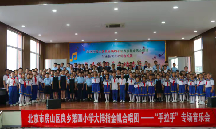 良乡四小大拇指金帆合唱团与育才小学合唱团联袂登台,从《山中月》的空灵悠远,到《茉莉花》的婉转清甜,再到《最好的未来》的温暖治愈,每一首曲目都化作情感的载体,传递着两校师生跨越千里的深厚情谊与对教育理想的共同追求。