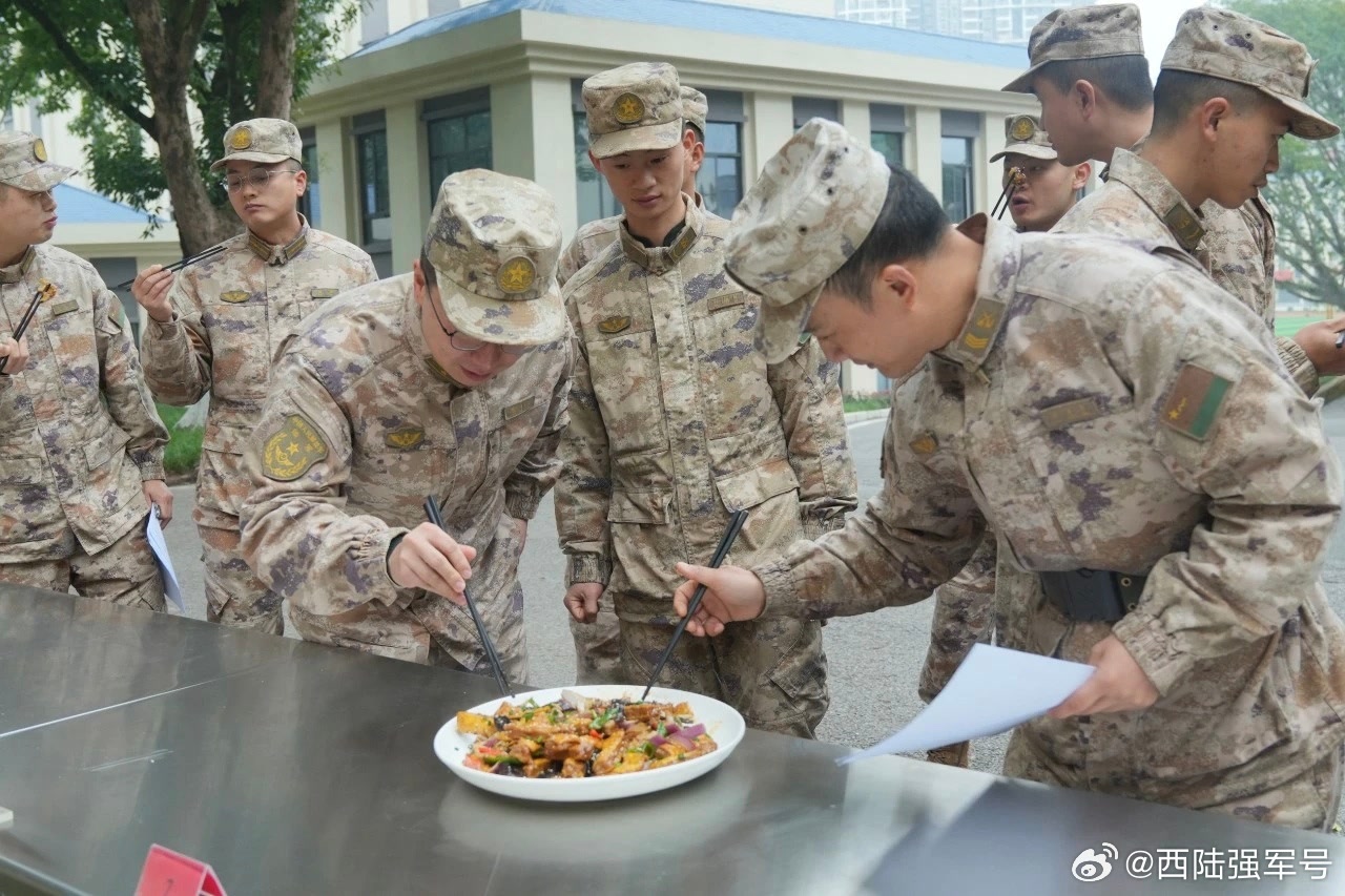 点火热灶挥勺翻炒、案板配菜刀工塑形、煎炸蒸煮调味调色……近日,第77集团军某旅举办了一场炊事专业集训比武,9支参赛队激烈角逐,现场锅气蒸腾,阵阵香气扑鼻而来。