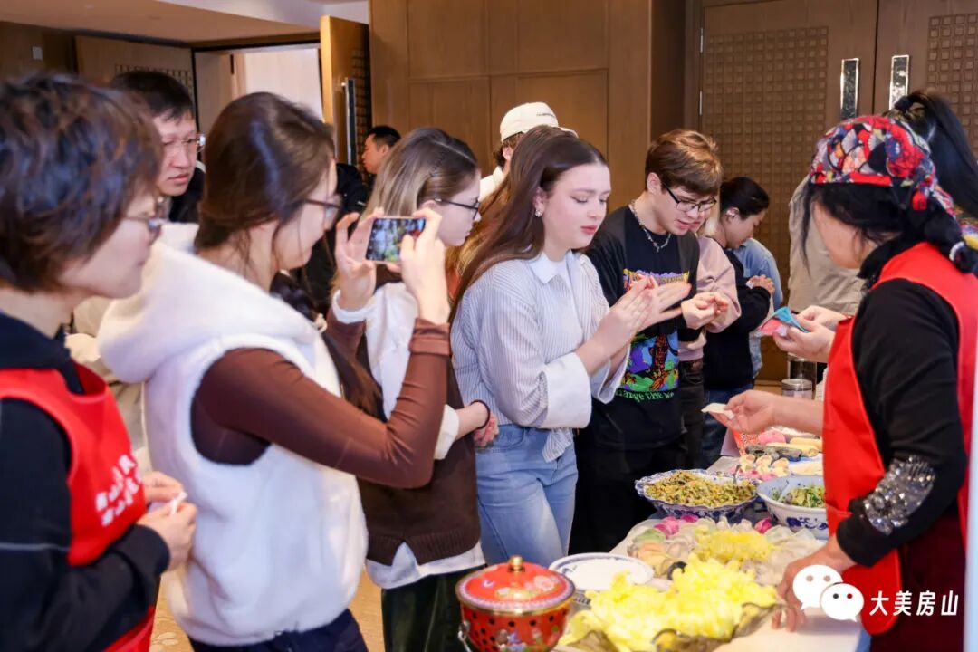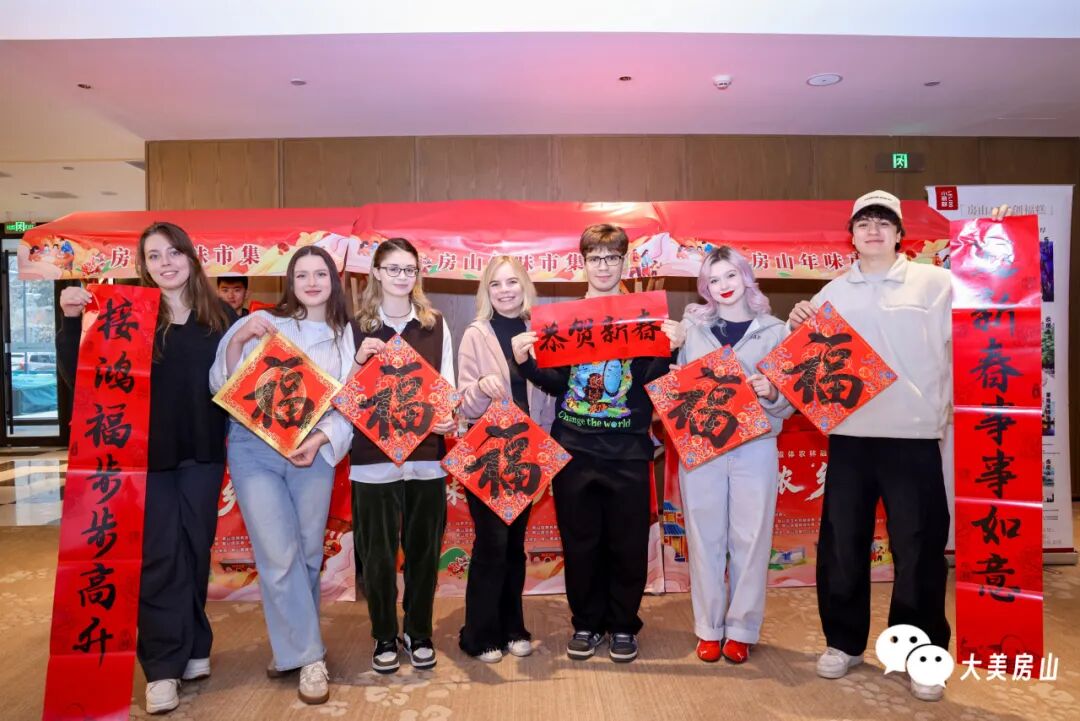 序厅内,周口店镇、韩村河镇、河北镇、大石窝镇、佛子庄乡的特色饺子现包现煮,热气腾腾的香气弥漫全场;非遗道口烧鸡、皇城四酱、花饽饽等传统美食以及房山特色文创等同步展示;包饺子、写春联、剪窗花、送福字等民俗体验热闹非凡,尽显传统年味底蕴。值得一提的是,良乡大学城的学子特别是留学生代表,通过跨文化视角分享对房山年味的理解,成为活动国际化传播的亮点,让传统年味在文化交流中焕发新活力。