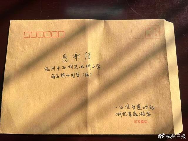 在感谢信中,他动情地写道:“你们稚嫩却坚定的举动,不仅化解了我的窘迫,更让我这个异乡人瞬间感受到了杭州冬天里最温暖的阳光。我的家乡孝感以‘孝文化’闻名;今天在杭州,我从你们身上看到了‘赠人玫瑰,手有余香’的文明底蕴……这份善意我会深深珍藏,带回孝感,告诉家人朋友:西湖的山水很美,但长桥小学同学们的心灵更美。”