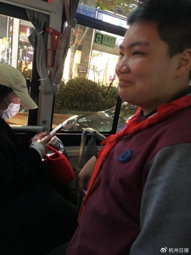 12岁的王思宇个子最高,那天他和小伙伴们像往常一样,从校门口的长桥站上车,乘车回家。路途中,从清波门站上来一对夫妻,正好站在他身旁。“看到他们没法付车费,和司机解释后有点茫然,我就用公交卡帮他们刷了一次。”王思宇说。