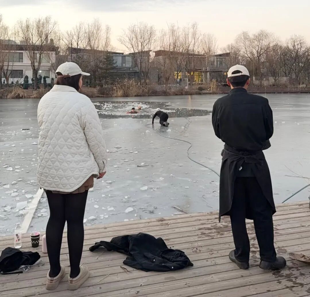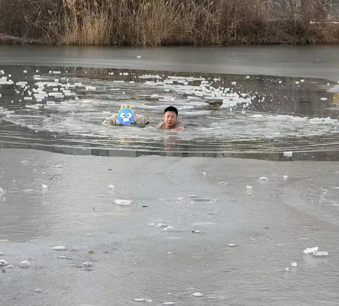 时间紧迫,他毫不犹豫地脱下外套,径直踏入了冰冷的湖水中。湖岸边缘虽结着厚厚的冰,但越往湖心越脆弱。赵先生在走出二三十米后,冰面骤然破裂,他也跌入了刺骨的冰窟窿中。“那一瞬间倒不觉得冷,可能就是肾上腺素上来了,心里只想着得再快一点救人。”赵先生说。