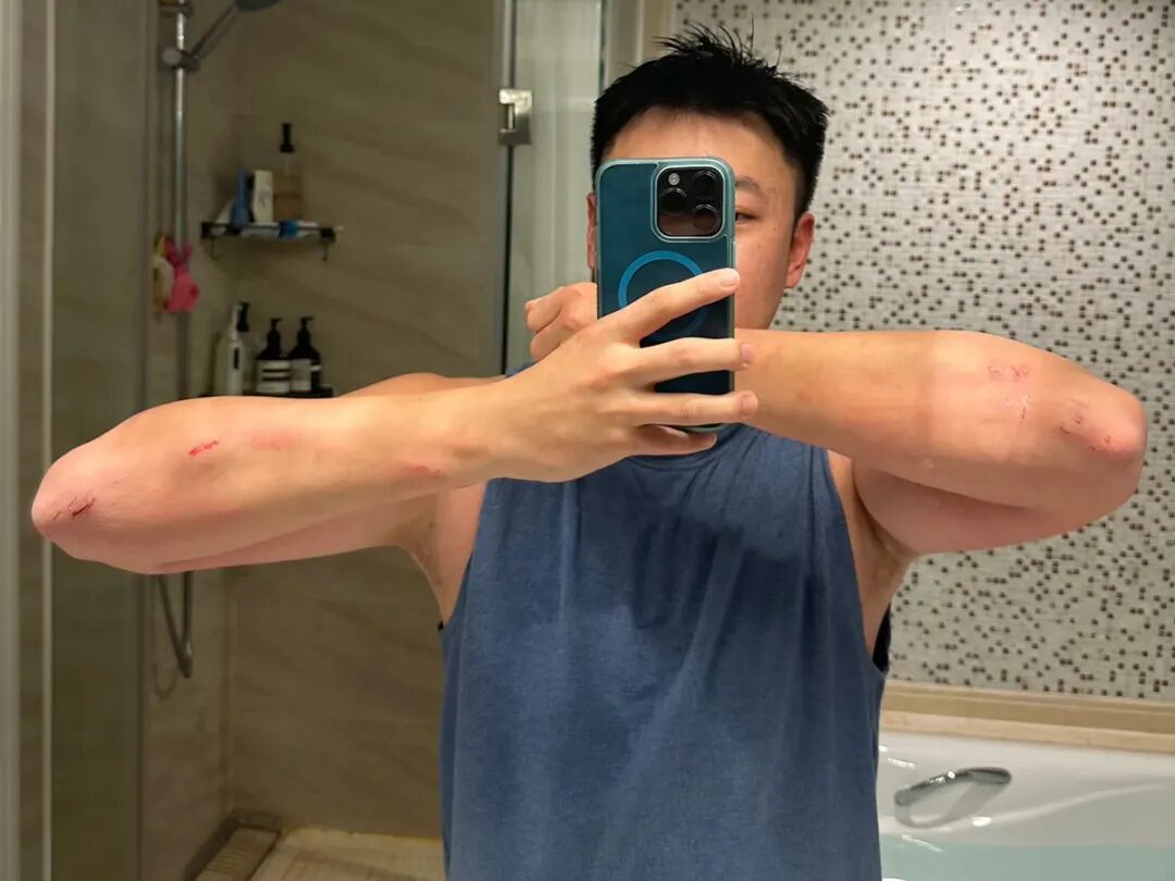 “我开始试着用手肘破冰带她回来,顶着冰碴划开的刺痛一点点向岸边厚冰层挪动,但体力下降太快,胳膊很快就没劲了。”危急时刻,赵先生短暂稳住心神,向落水者喊道:“保存体力!你先趴在冰上别动。”